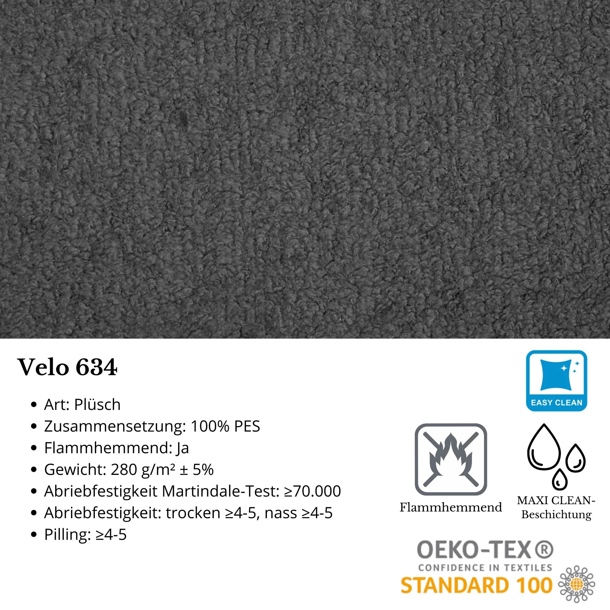 VELO - Díky nanotechnologii nano-bloků použité při její výrobě je látka Velo chráněna před absorpcí tekutin, takže vnitřek nábytku není poškozen. Molekuly vody a další tekutiny zůstávají na povrchu látky. Měkká látka Velo je velmi příjemná na dotek a zaujme svými barvami. Rádi bychom vás informovali, že všechny rozměry čalouněného nábytku musí být dodrženy s tolerancí +/- 2 %. Snažíme se, aby všechny barvy co nejvíce odpovídaly skutečnosti. Upozorňujeme však, že se mohou od skutečnosti mírně lišit v důsledku nastavení monitoru a grafické karty. To proto není důvod k reklamaci. Barvy různých sérií látek se navíc mohou lišit v odstínech. Dodání platí pro adresy v rámci Německa. Nedodáváme na ostrovy ani do horských oblastí. Máme vlastní bezpečnou a rychlou přepravní službu. O datu dodání budete předem informováni.