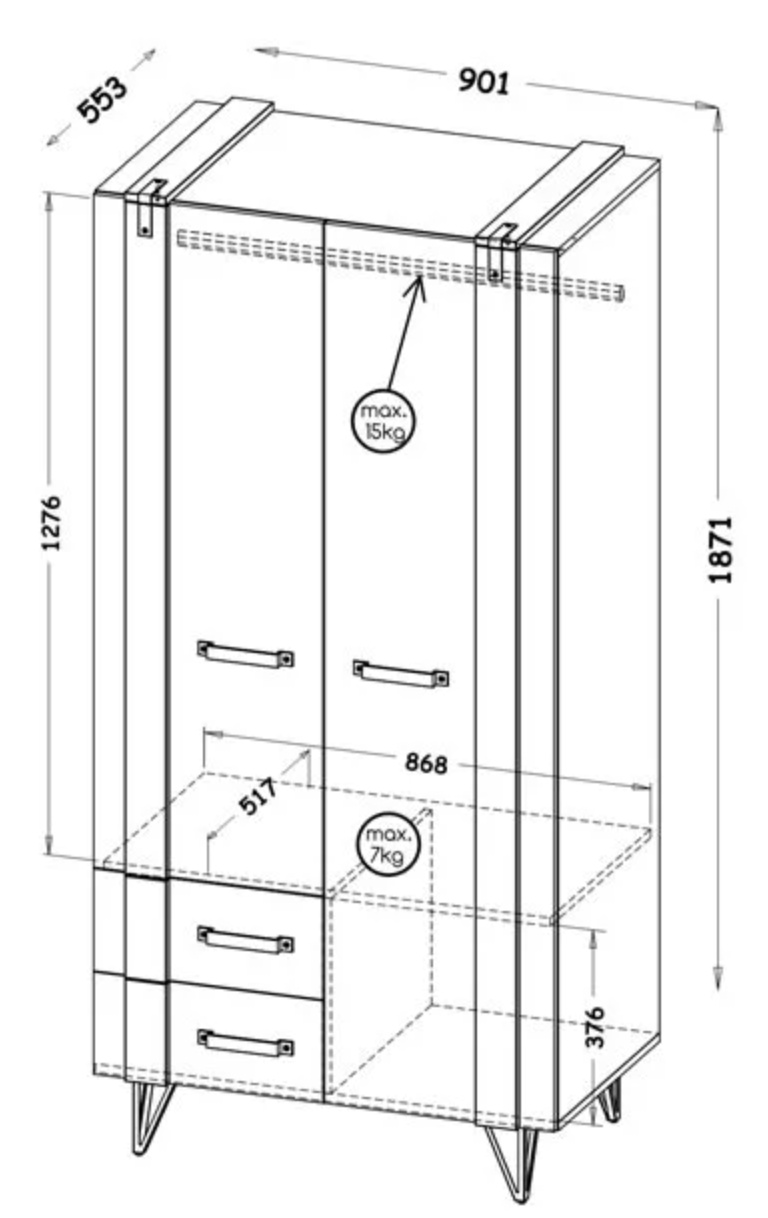 90x187x55cm