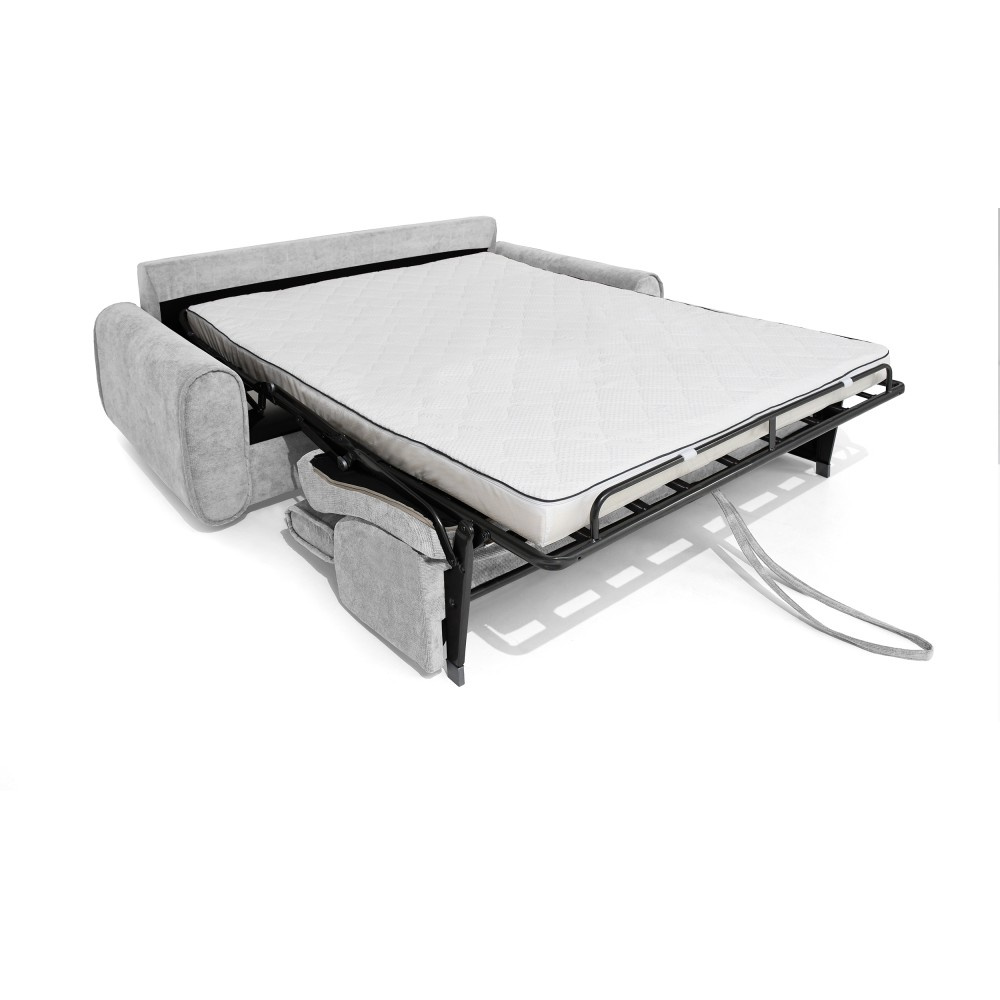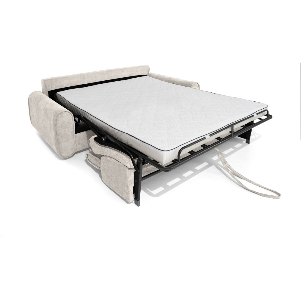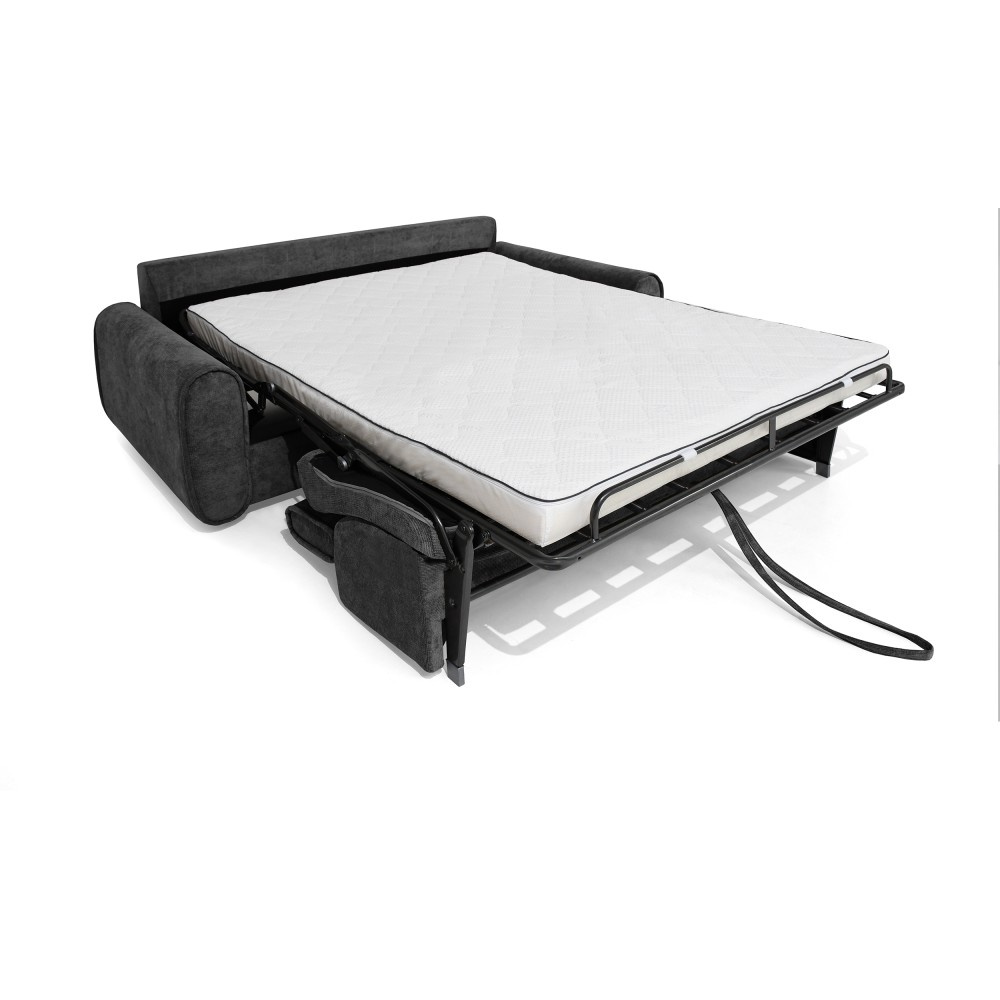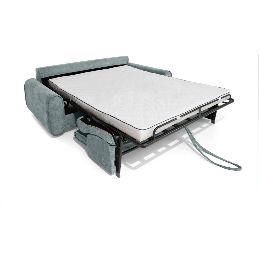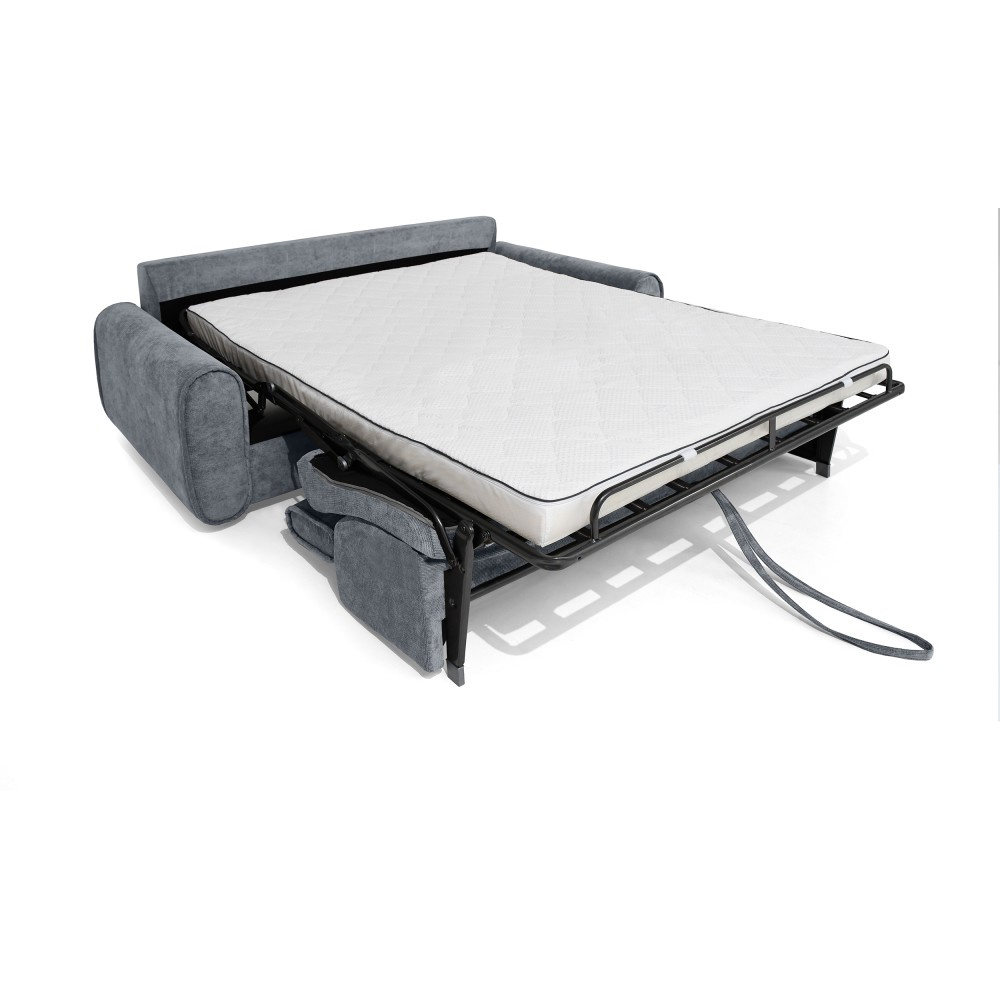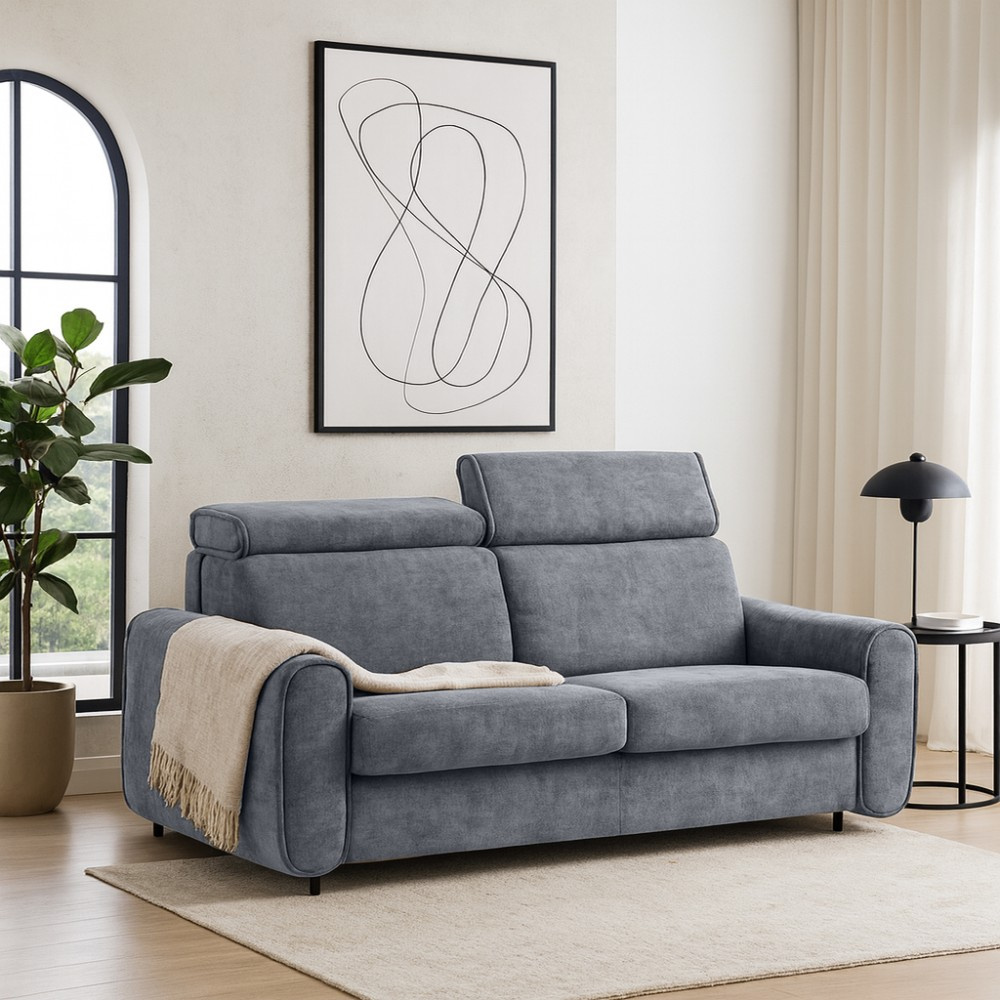Pohovka PAVARTI kombinuje moderní design, vysoké pohodlí a promyšlenou funkci spaní. Díky elegantní velurové potahové látce s žebrovanou texturou se rychle stane stylovým ústředním bodem obývacího pokoje. Díky vysoce kvalitnímu zpracování je vhodná pro každodenní použití i jako praktické řešení pro spaní hostů. Italský rozkládací systém – pohovka se rozloží na pohodlnou postel jediným, plynulým pohybem opěradla a sedáku. Systém, který je jednoduchý, rychlý a odolný. Integrovaná matrace o tloušťce 10 cm – plocha na spaní se skládá z PU pěny a je potažena speciálním stříbrným potahem s ionty stříbra. Vytváří tak hygienické a pohodlné prostředí pro spaní – ideální pro pravidelné používání. Praktická přihrádka na ložní prádlo – polštáře, přikrývky nebo ložní prádlo lze uložit přímo do pohovky. Díky tomu udržuje obytný prostor uklizený a vše, co potřebujete, je okamžitě po ruce. Čalouněné popruhy na sedáku zajišťují stabilitu, odolnost a příjemně elastický zážitek ze sezení, který dále zvyšuje pohodlí. Tři volitelné velikosti – v závislosti na místnosti a vašich potřebách je pohovka k dispozici v šířkách 194 / 214 / 234 cm. Odpovídající plochy na spaní měří 140 / 160 / 180 × 200 cm, což zajišťuje vhodné řešení pro každou životní situaci. Stylová velurová látka – moderní velurový potah s žebrovanou strukturou dodává pohovce elegantní vzhled a zároveň je příjemně měkká na dotek. Pohovka PAVARTI je perfektní volbou pro každého, kdo chce spojit pohodlí, funkčnost a design. Ať už jako útulná pohovka do obývacího pokoje nebo pohodlné lůžko pro hosty – zaujme svými vysoce kvalitními prvky, promyšlenými detaily a všestranným využitím. Kus nábytku, který je vizuálně přitažlivý a praktický pro každodenní použití.