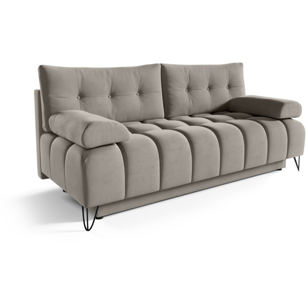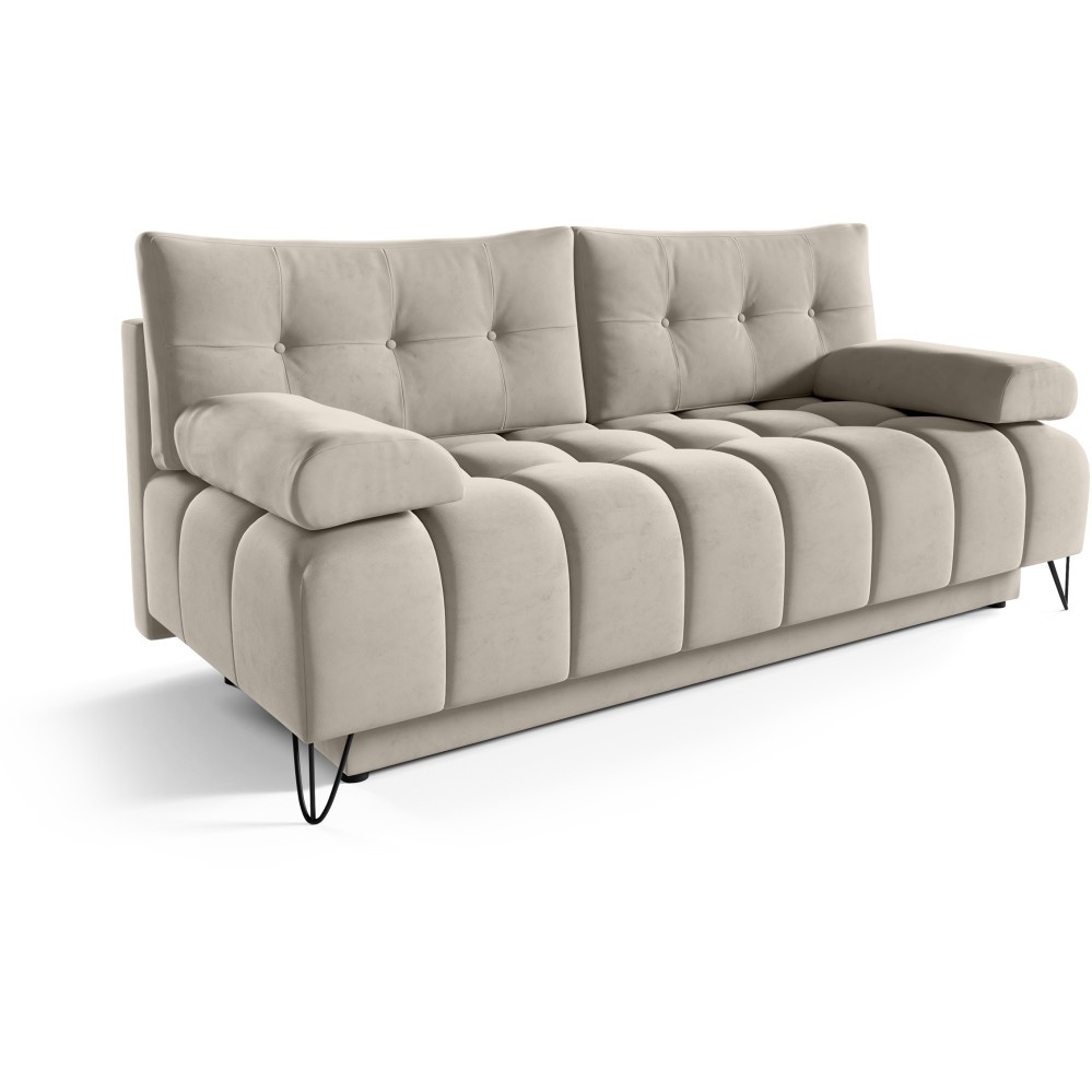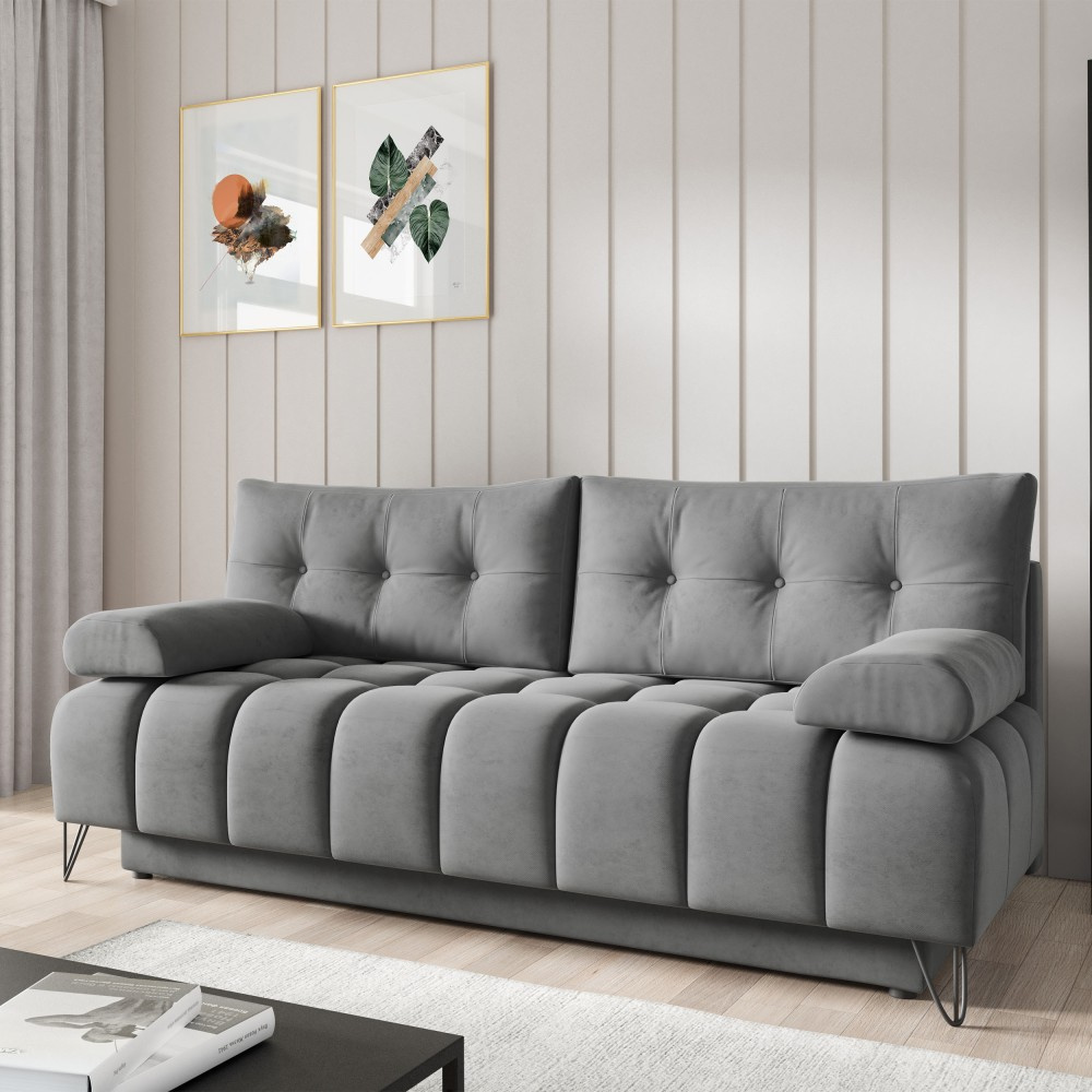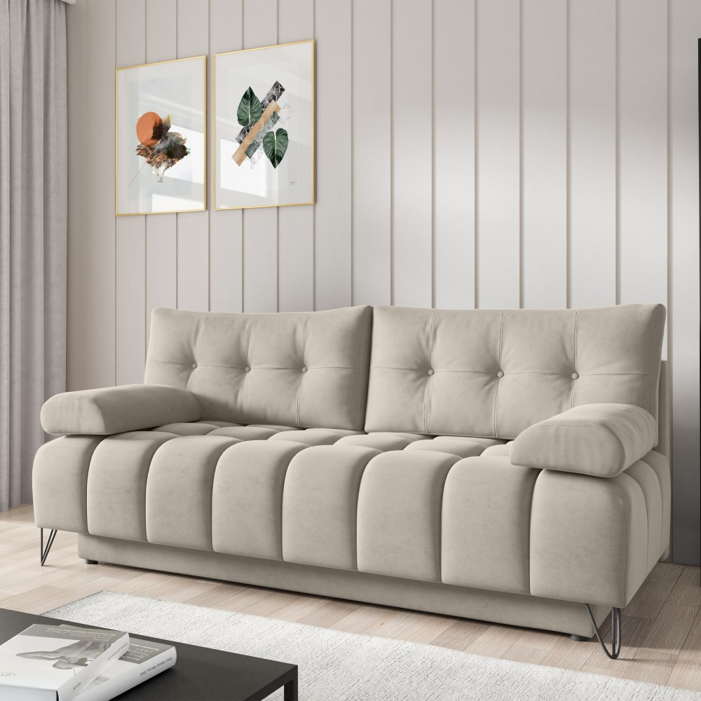 Pohovka BERGEN je ideální volbou pro každého, kdo nechce dělat kompromisy v pohodlí a funkčnosti v malém prostoru. Díky svým rozměrům (197 x 100 x 93 cm) se perfektně hodí do bytů, pokojů pro hosty nebo menších obývacích pokojů. Pohodlné sezení - Sedák s vlnovým pružinovým odpružením typu B a vysoce elastickou pěnou zajišťuje vysoké pohodlí a odolnost. Ať už čtete, sledujete televizi nebo relaxujete – vždy se zde budete pohodlně usadit. Funkce spaní a úložný prostor - Pohovka má praktickou funkci spaní, která ji během chvilky promění v pohodlnou postel. Integrovaný úložný prostor nabízí další prostor pro ložní prádlo, přikrývky nebo polštáře. Mechanismus DL umožňuje rychlé a snadné rozložení postele. Moderní design a vysoce kvalitní materiály - Pohovka čalouněná elegantní velurovou látkou Amon zaujme svým sofistikovaným vzhledem a příjemným pocitem na dotek. Robustní černé nohy dotvářejí moderní vzhled. Flexibilní umístění - Jako volně stojící kus nábytku s plně čalouněným opěradlem můžete pohovku volně umístit v místnosti nebo klasicky ke zdi. Rozměry: Šířka: 197 cm Výška: 93cm