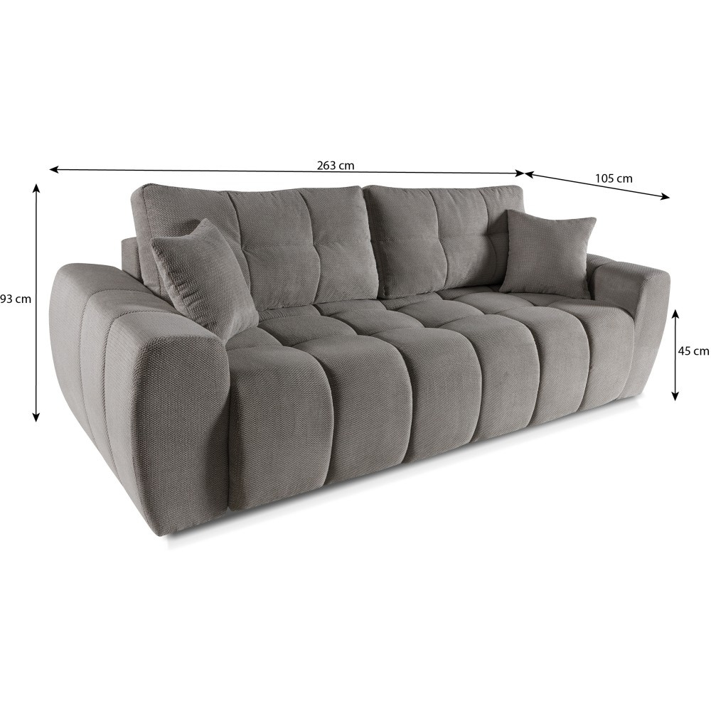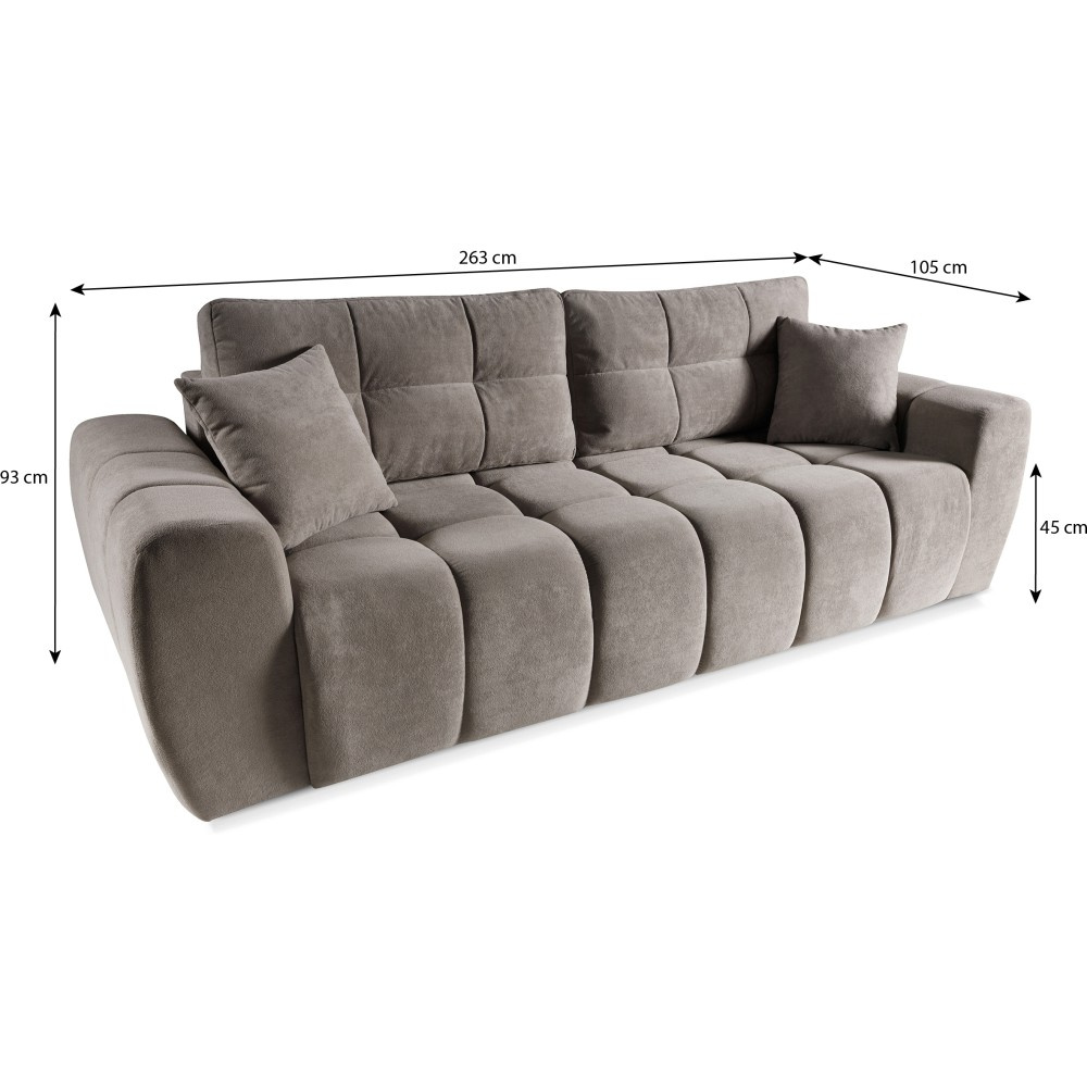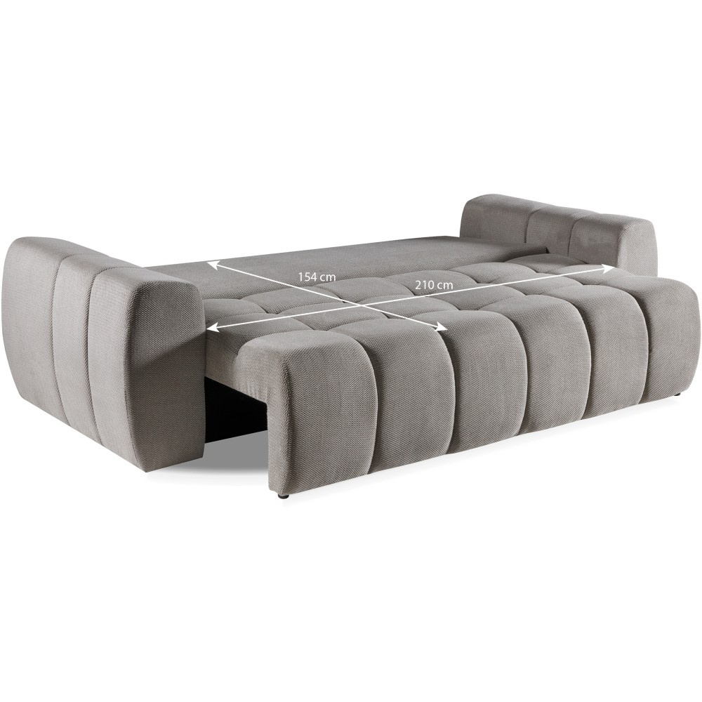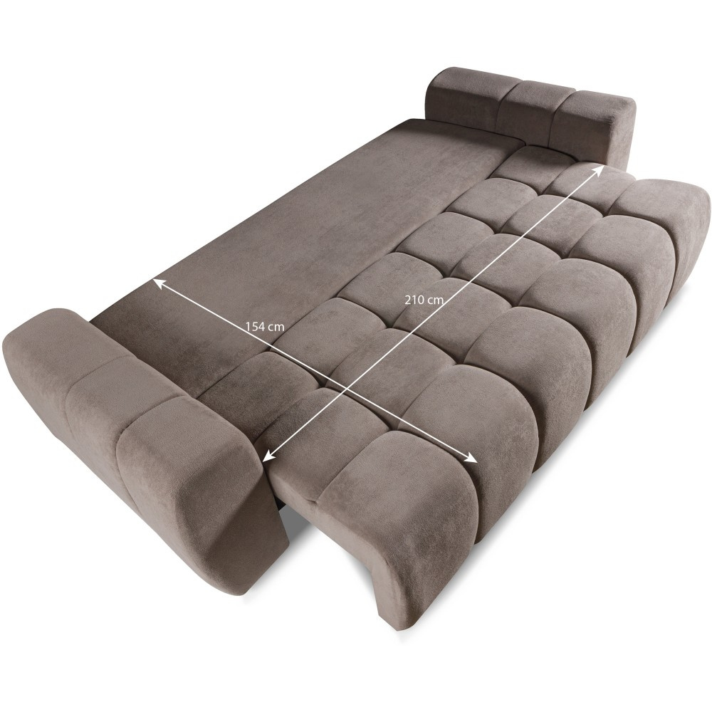 Stylová Pohovka FAVI kombinuje moderní design s vysokou funkčností a zajišťuje útulnost v každém obývacím pokoji. Ať už jako pohodlné sezení pro každodenní použití nebo jako praktická postel pro hosty – tento model je perfektní volbou pro každého, kdo si cení pohodlí a úložného prostoru. Pohodlné sedátko s vlnitými pružinami pro dlouhodobé pohodlí. Praktická funkce spaní s velkorysou plochou na ležení 210 x 154 cm. Výsuvný mechanismus DL – rychlé a snadné rozložení. Integrovaný úložný prostor – ideální pro uložení dek a polštářů, Pohodlné opěradlo pro uvolněné sezení a ležení, Vysoce kvalitní výběr látek: Dunbar – robustní tkaná látka, Soft – příjemný, sametový plyš, S třímístnou pohovkou FAVI získáte pohovku, která zaujme nejen vizuálně, ale také svou praktickou funkcí spaní a velkorysý úložný prostor je potěšením.