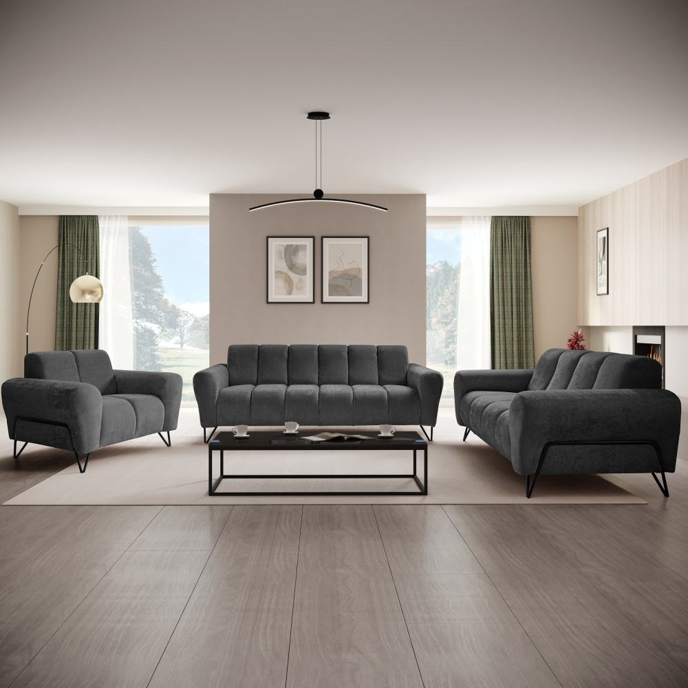 2-místné sofa VOLARE je ideální volbou pro moderní obytné prostory, které spojují eleganci a funkčnost. Se svými čistými liniemi a dekorativními černými kovovými nohami vyzařuje nadčasovou eleganci a ideálně se hodí k různým stylům zařízení.