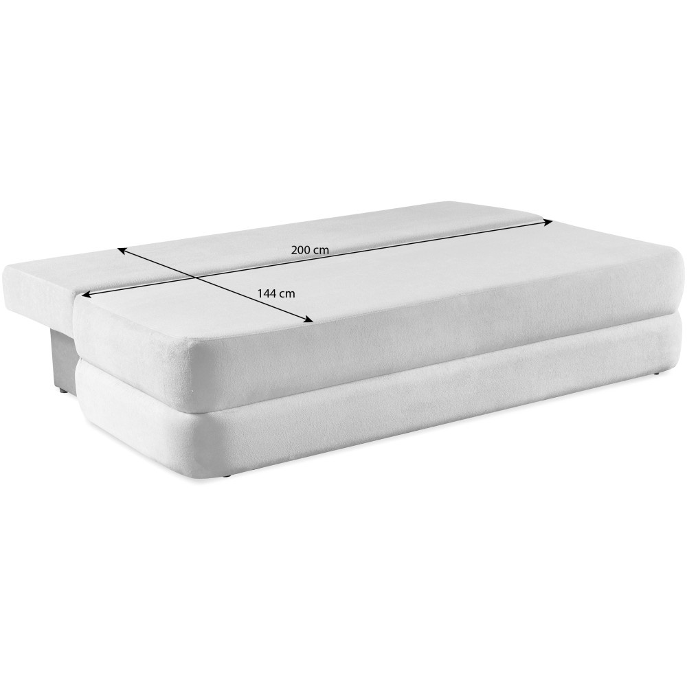 ? Pohodlný sedák s pružinami Bonnell pro dlouhodobé pohodlí. Funkce spaní s výsuvným mechanismem – snadné a rychlé rozložení. Praktický box na postel pro další úložný prostor. Velkorá plocha na spaní: 200 x 144 cm. Měkká plyšová látka Gerra – příjemná na dotek a snadná údržba