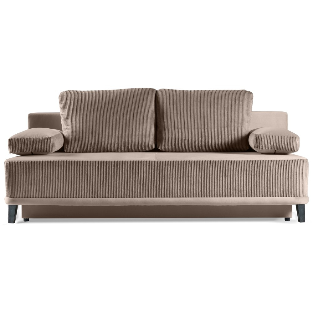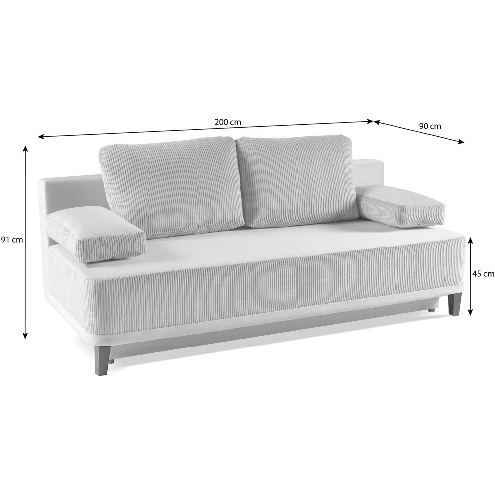 Stylová a funkční pohovka, která kombinuje moderní design s vysokým komfortem sezení. Díky integrované funkci spaní a úložnému prostoru je ideální pro každodenní použití i pro hosty přes noc. Sedák: Pružiny Bonnell – odolné a pohodlné, Funkce: Funkce spaní s integrovaným úložným prostorem, Mechanismus: Výsuvný mechanismus DL – snadné použití, Pohodlí: Pohodlný sedák a ergonomický design Opěradlo, 200 × 143 cm – ideální pro relaxaci a spaní, Potah: Látka Poso + Paros – kombinace měkkého manšestru a hebkého plyše, Třímístná pohovka RISO není jen praktickým kusem nábytku, ale také skutečným vrcholem vašeho obývacího pokoje. Díky funkční funkci spaní, integrovanému úložnému prostoru a stylové kombinaci manšestru a plyše kombinuje pohodlí, design a každodenní praktičnost na nejvyšší úrovni. Rozměry: Šířka: 200 cm Výška: 91 cm Délka: 90 cm Výška sedáku: 45 cm Plocha na spaní: 143 x 200 cm POSO – Látka – Žebrovaná, vysoce výrazná struktura látky je skutečným poutavým prvkem a silným designovým prvkem. Poso je neuvěřitelně pohodlná a měkká na dotek. PAROS / KRONOS – Odolná sametová látka, která se snadno čistí, má stinný omak a je vhodná pro domácí mazlíčky. Na látce jsou po doteku viditelné různé odstíny barev. K dispozici v mnoha módních a nadčasových barvách. Upozorňujeme, že všechny rozměry čalouněného nábytku mají toleranci +/- 2 %. Snažíme se zobrazit všechny barvy co nejpřesněji. Upozorňujeme však, že se mohou mírně lišit v závislosti na nastavení monitoru a grafické karty. To není důvod k reklamaci. Barvy různých sérií látek se navíc mohou lišit v odstínech. Dodání je možné na adresy v rámci Německa. Nedodáváme na ostrovy ani do horských oblastí. Máme vlastní bezpečnou a rychlou přepravní službu. O datu dodání vás budeme předem informovat.