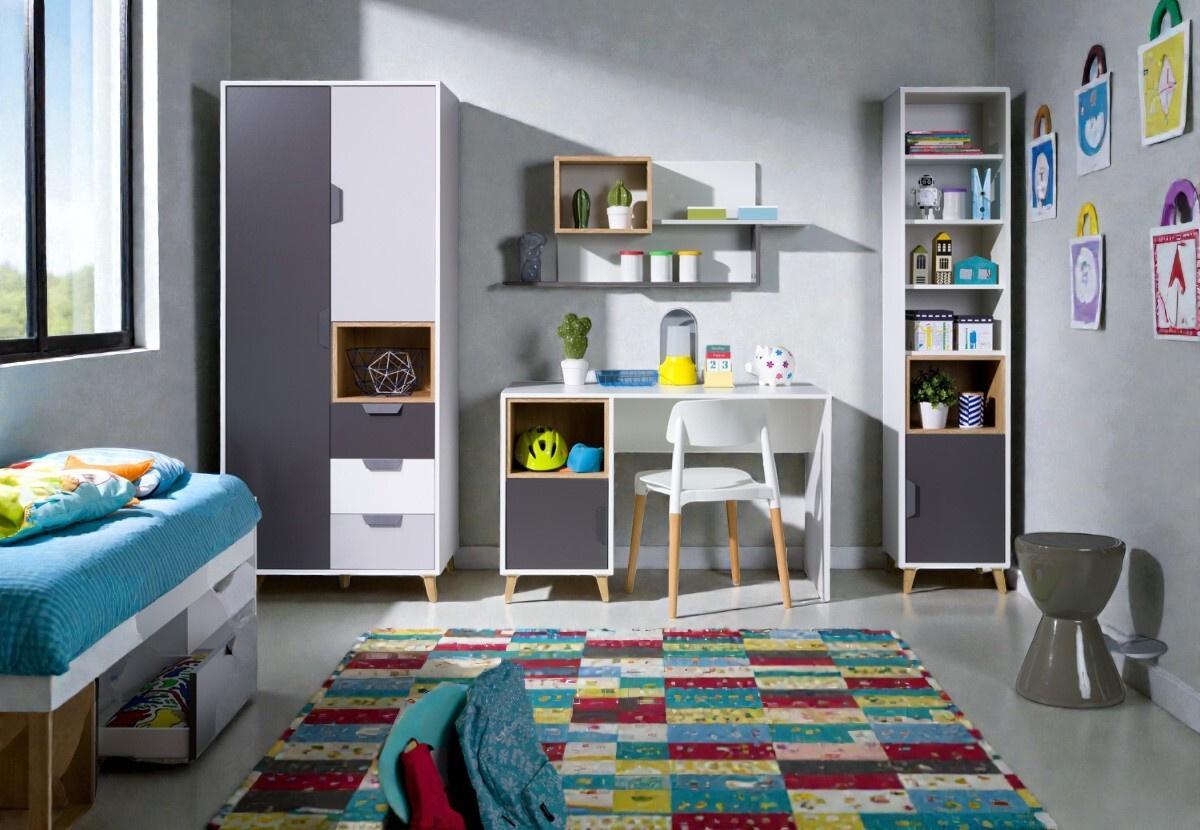 Zařídit pokoj pro teenagera je výzva, která vyžaduje cit pro detail a pochopení pro individualitu. Studentský nábytek Beluga navržen přesně pro mladé lidi, kteří chtějí, aby jejich pokoj odrážel jejich styl. Tato kolekce pracuje s odvážným kontrastem bílé, grafitu a šedé, které spolu vytvářejí moderní a svěží celek. Celkový vzhled pak elegantně zjemňují nožky v přírodním dekoru dubu lefkas.