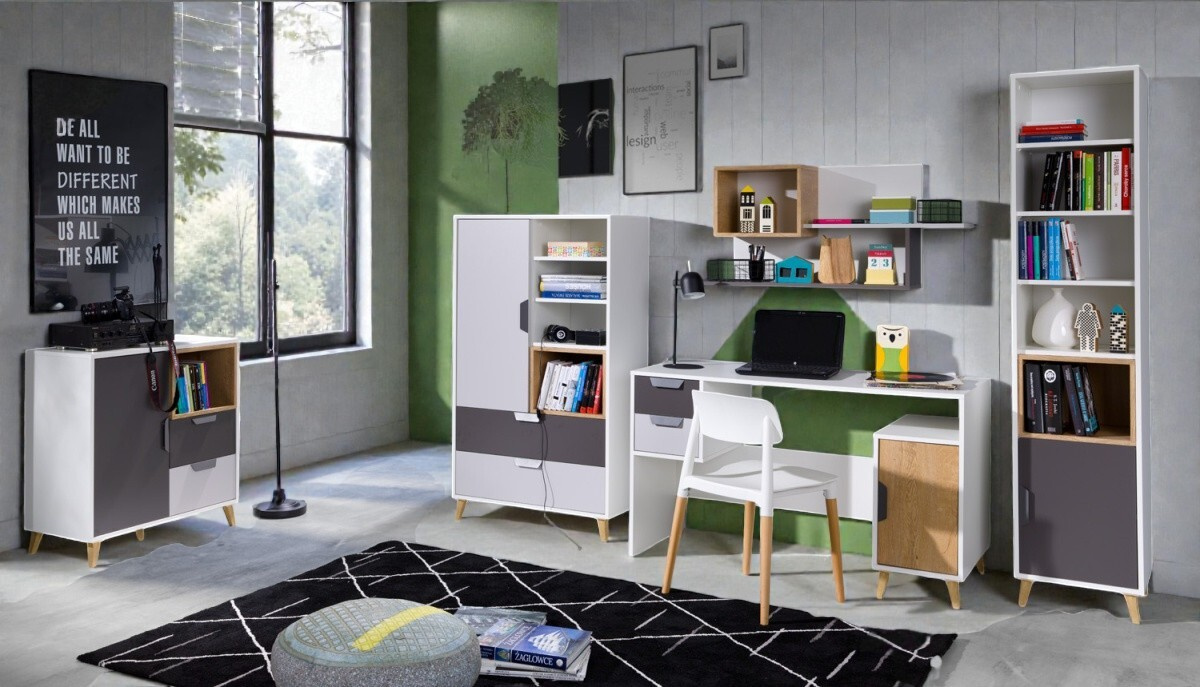 Zařídit pokoj pro teenagera je výzva, která vyžaduje cit pro detail a pochopení pro individualitu. Studentský nábytek Beluga navržen přesně pro mladé lidi, kteří chtějí, aby jejich pokoj odrážel jejich styl. Tato kolekce pracuje s odvážným kontrastem bílé, grafitu a šedé, které spolu vytvářejí moderní a svěží celek. Celkový vzhled pak elegantně zjemňují nožky v přírodním dekoru dubu lefkas.
