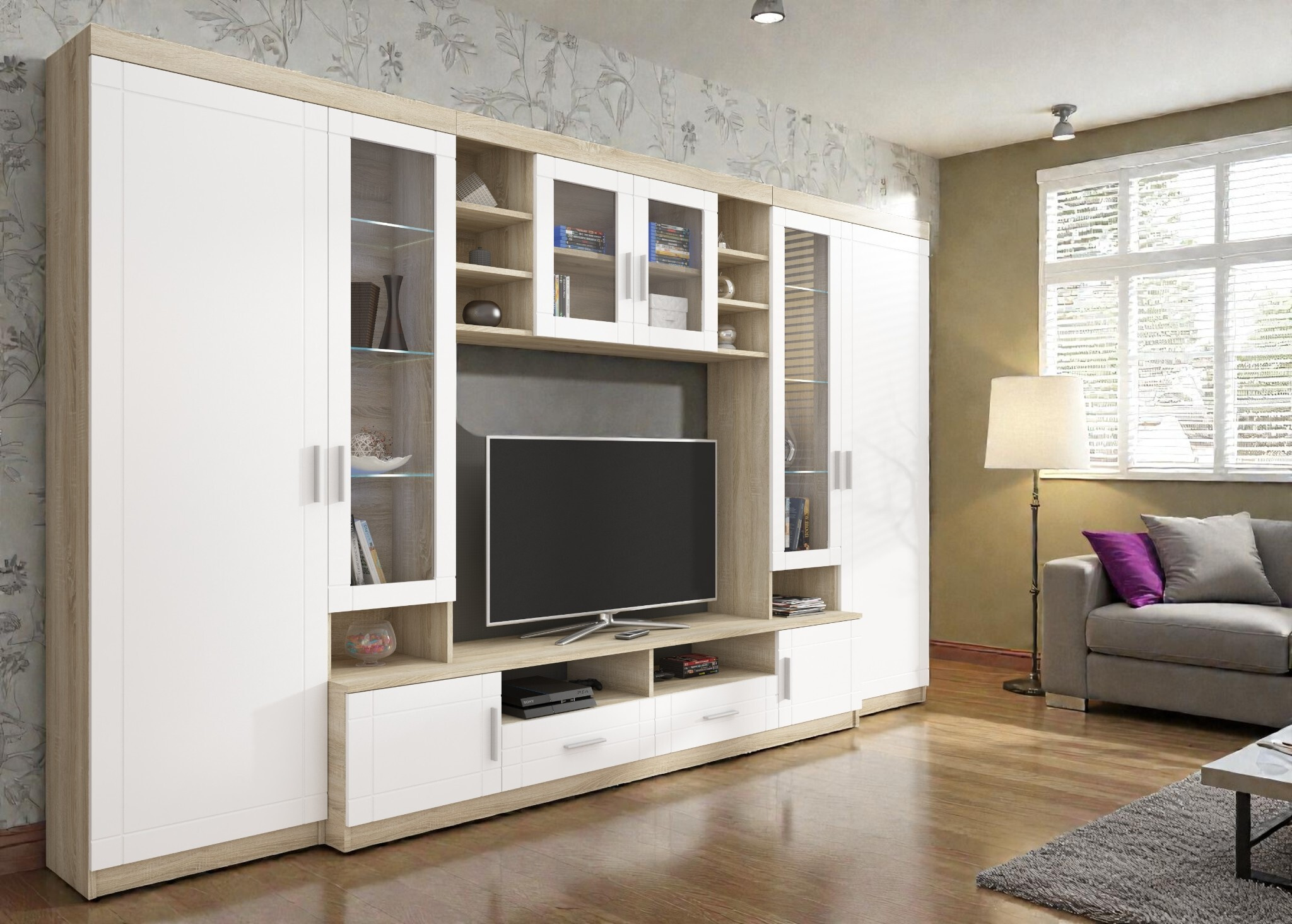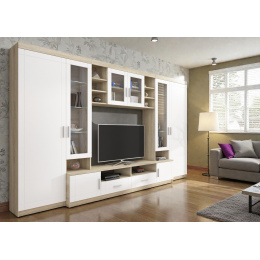 Tato obývací stěna představuje ideální spojení tradičního designu a moderní odolnosti. Díky své výšce a hloubce nabízí velkorysý úložný prostor, zatímco elegantní materiály zajistí, že se stane dominantou vašeho interiéru.