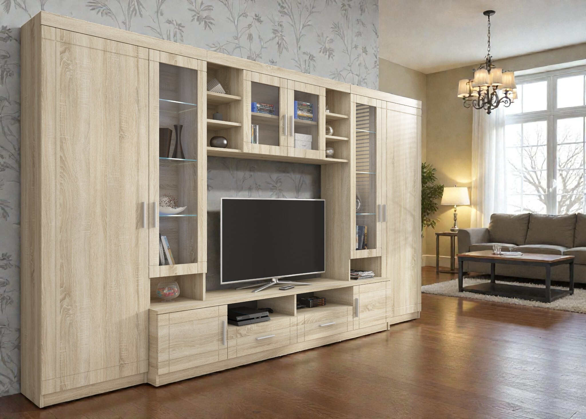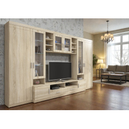 Tato obývací stěna představuje ideální spojení tradičního designu a moderní odolnosti. Díky své výšce a hloubce nabízí velkorysý úložný prostor, zatímco elegantní materiály zajistí, že se stane dominantou vašeho interiéru.