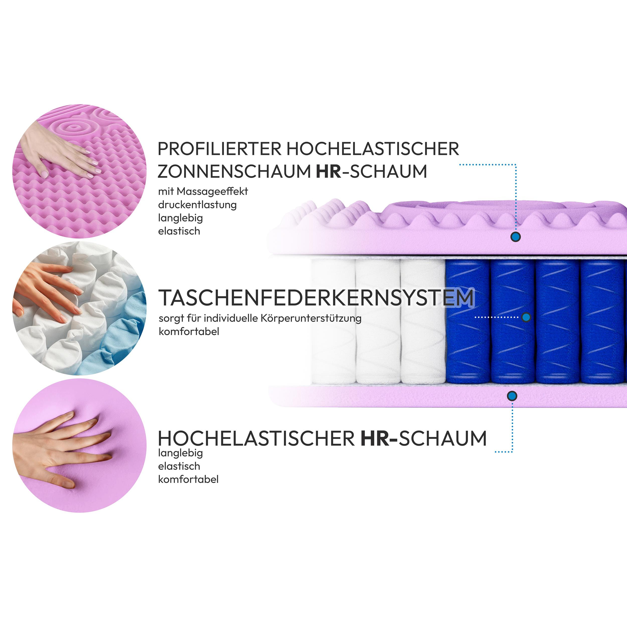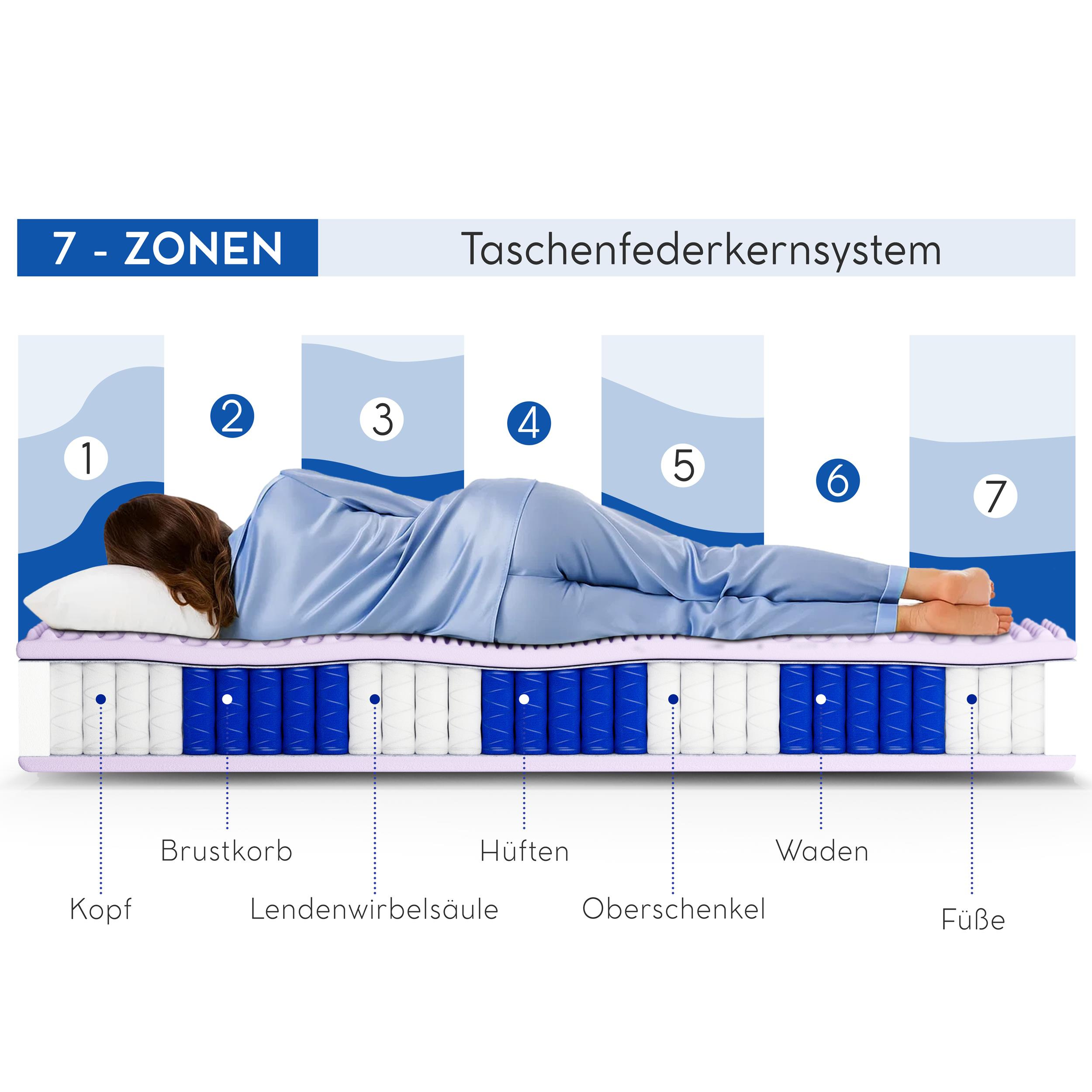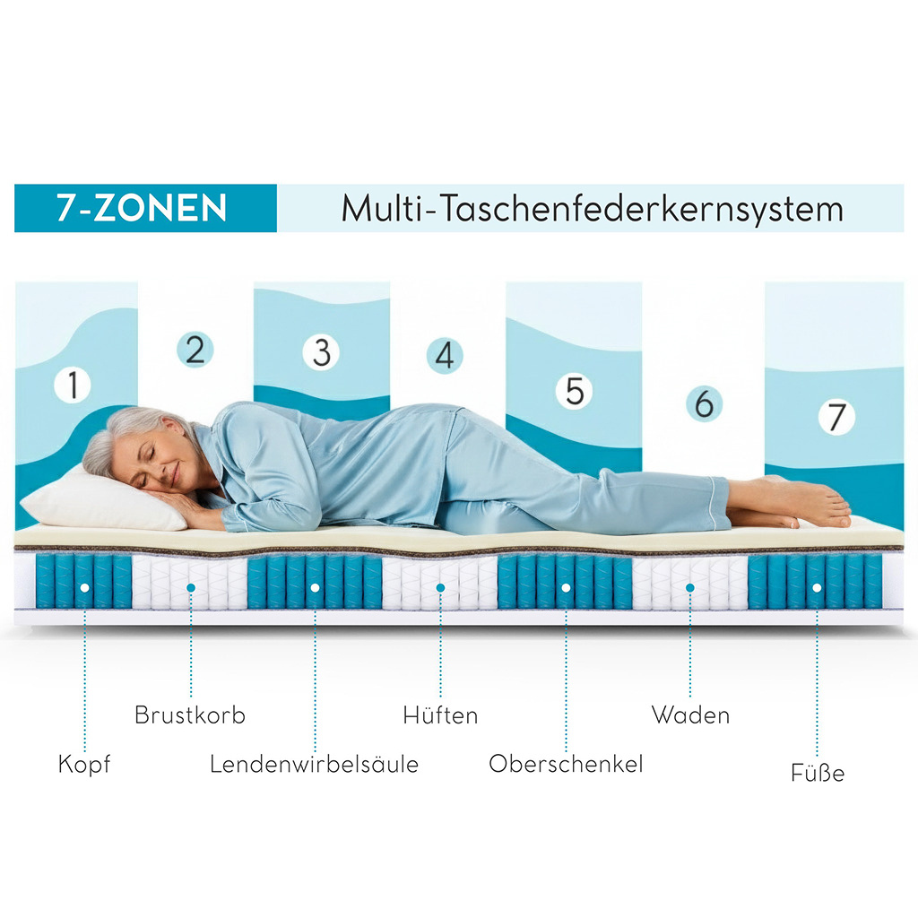 Zajišťuje optimální rozložení tlaku, přesnou oporu a pohodlné přizpůsobení tvaru těla, čímž podporuje klidný spánek.