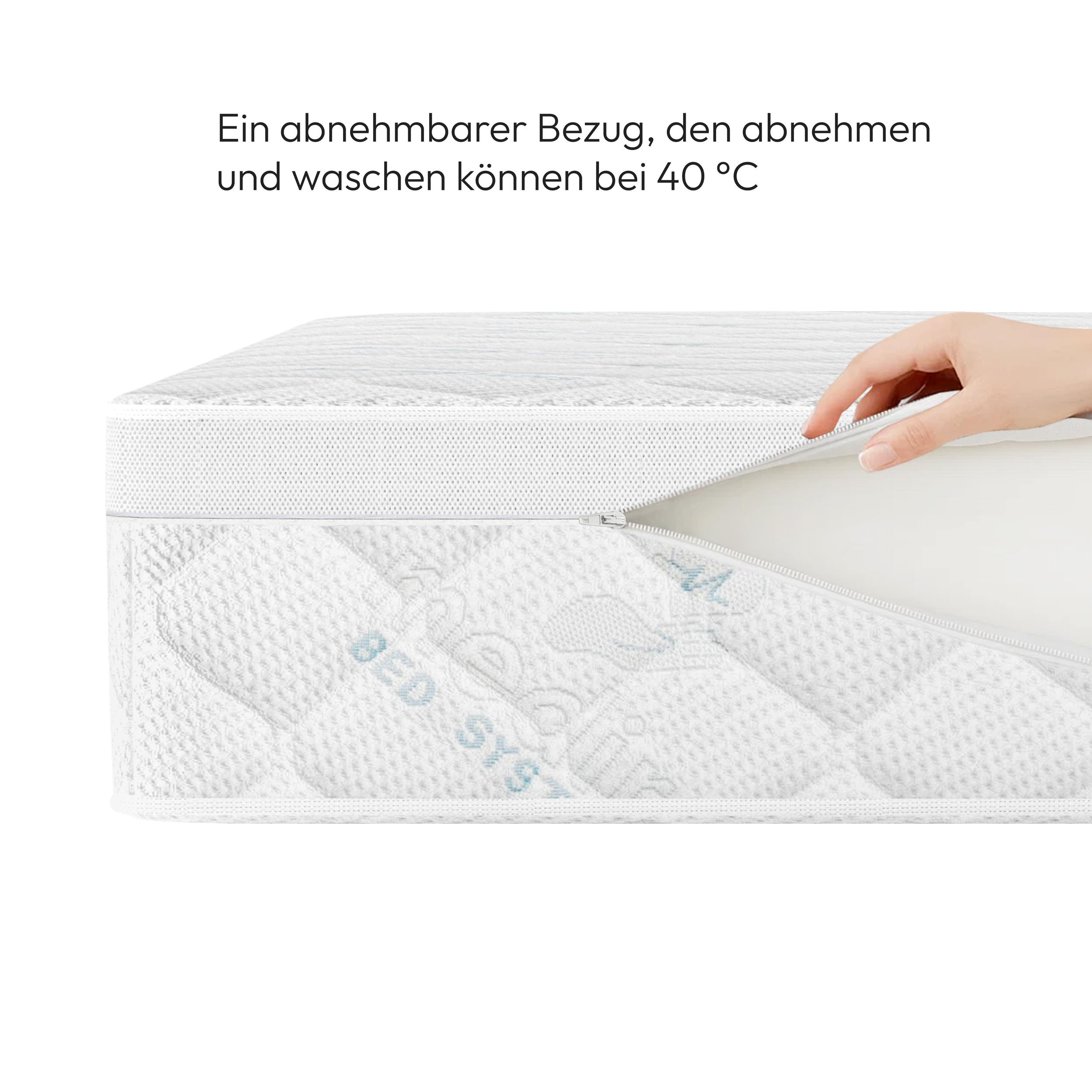 Je snadno snímatelný a pratelný při 40 °C, což zaručuje hygienu a svěžest po mnoho let.