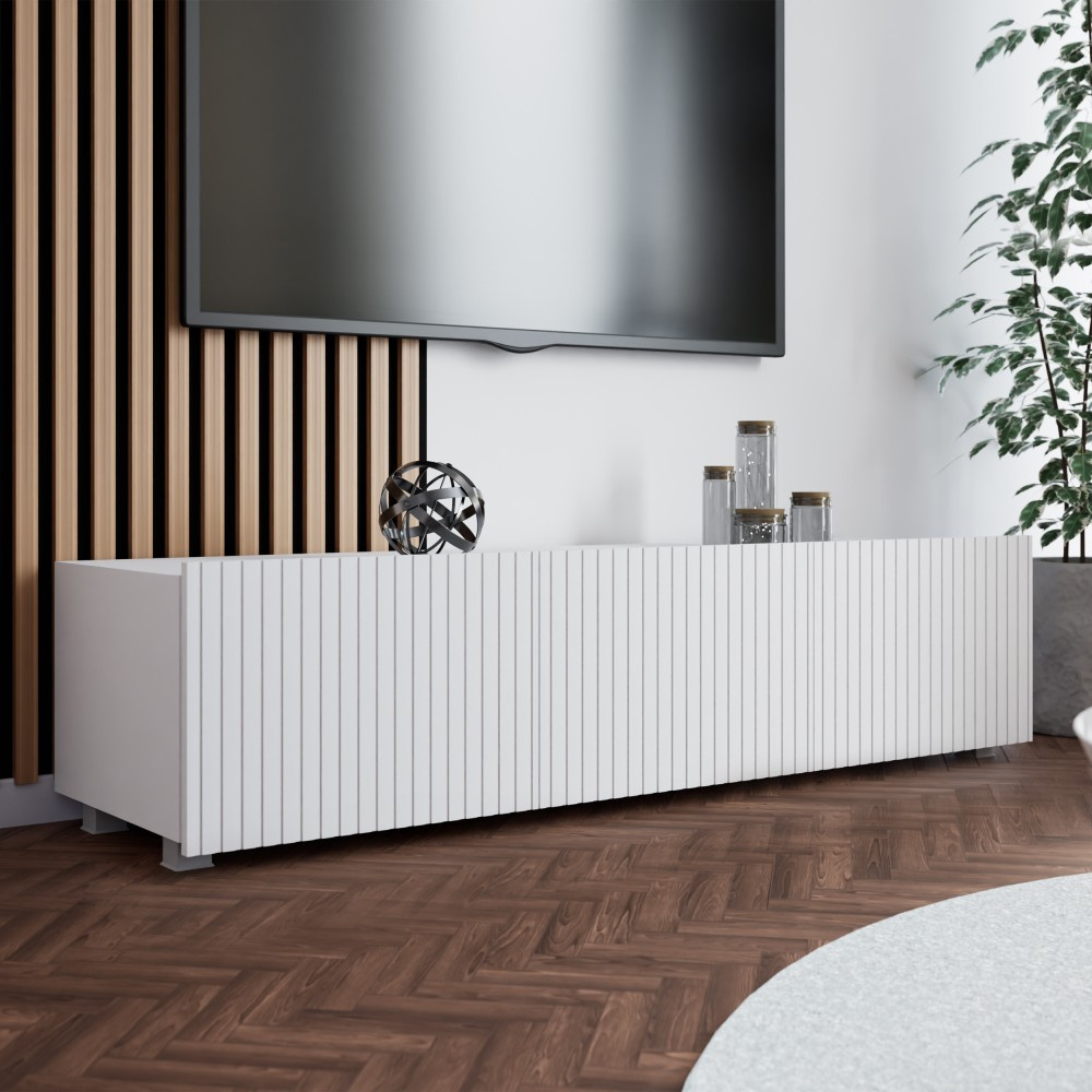 TV stolek KAVELL kombinuje elegantní design, vysoce kvalitní zpracování a flexibilní možnosti použití. Je to perfektní doplněk vašeho obývacího pokoje, který vnese pořádek a styl.