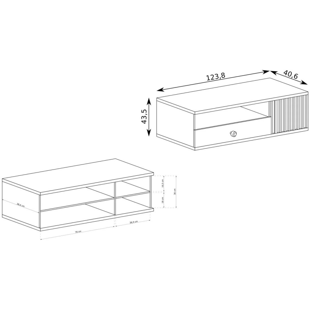 - Nízký TV stolek s 1 zásuvkou a 1 dvířky – ideální pro televizi, přijímač a příslušenství,