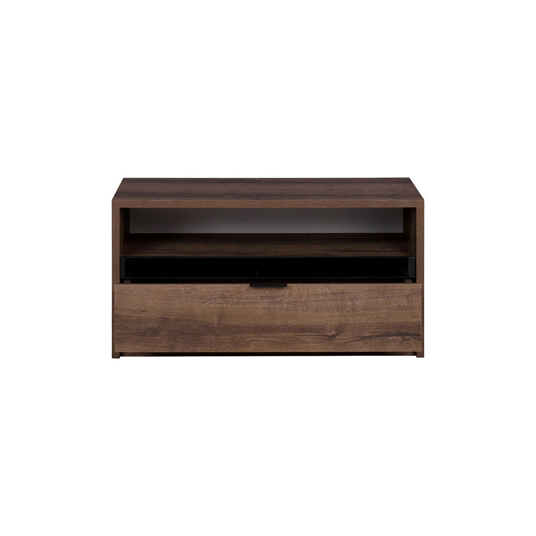 TV stolek DEVON kombinuje moderní design s praktickou funkčností a je ideálním řešením pro stylové obývací pokoje. Kombinace Monastery Oak a High-Gloss Black dodává nábytku elegantní a moderní vzhled, zatímco lesklé vložky dodávají dekorační akcenty. Zásuvka nabízí úložný prostor pro multimediální příslušenství, dálkové ovladače nebo dokumenty. Kovové úchyty umožňují pohodlné otevírání a ABS hrany spolehlivě chrání povrch před poškrábáním a opotřebením. Praktická zásuvka: Ideální pro uložení příslušenství a malých dílů. Elegantní design: Kombinace vzhledu dřeva a vysokého lesku s lesklými detaily. Robustní materiály: ABS hrany chrání před poškozením.
