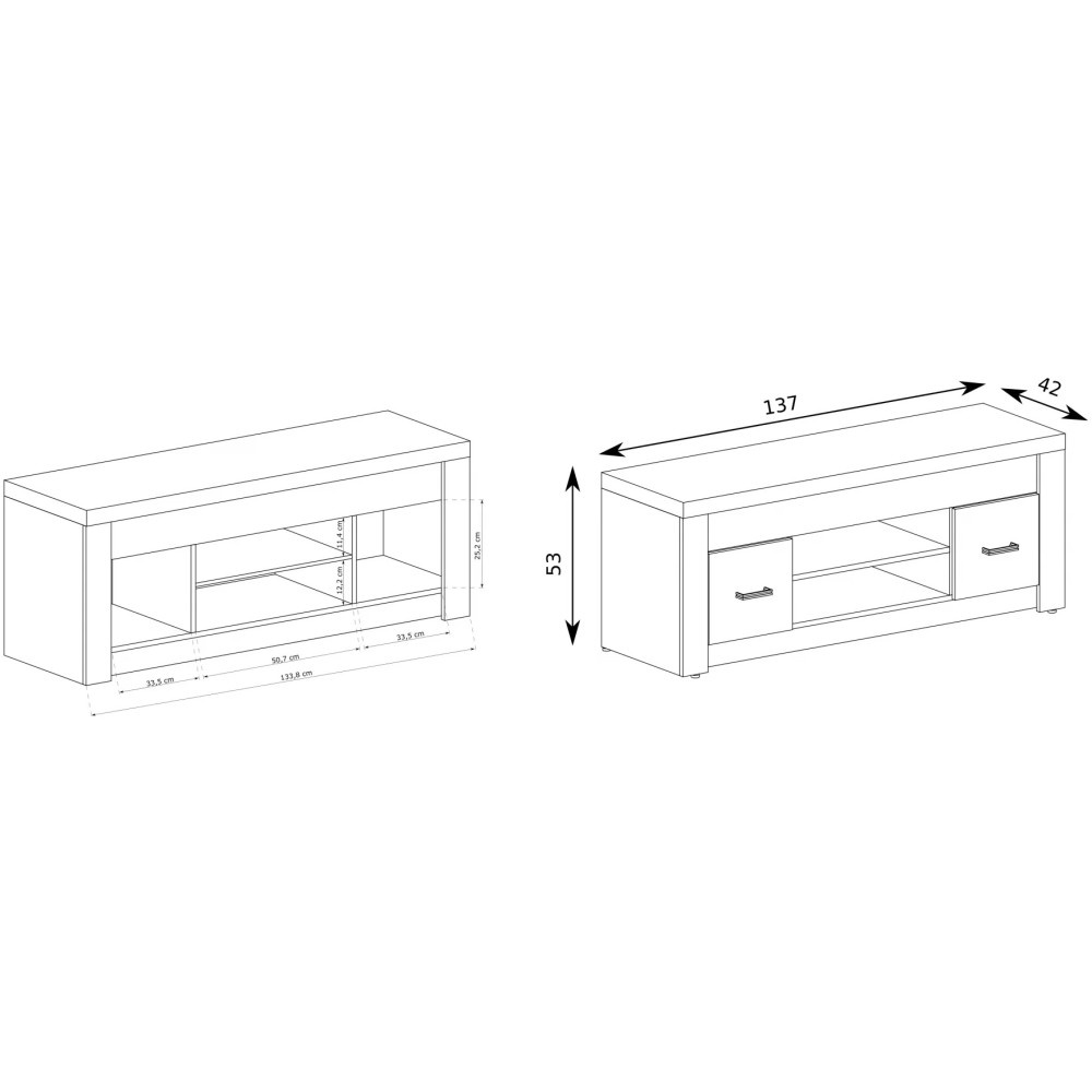 TV stolek POLIS se 2 dvířky kombinuje moderní design s praktickou funkčností. Integrované LED osvětlení přední části poskytuje stylové světelné akcenty a dodává vašemu obývacímu pokoji útulnou atmosféru. Otevřený prostor uprostřed je ideální pro přijímače, herní konzole nebo jiná mediální zařízení, zatímco dvě boční skříňky s dvířky nabízejí další úložný prostor pro elektroniku, knihy nebo příslušenství. Elegantní kovové úchyty a čisté, moderní linie dokonale doplňují design. Vyrobeno z robustní, snadno udržovatelné laminátové desky, tato nízká skříňka zaujme svou odolností a snadným čištěním. TV stolek je součástí série POLIS a dokonale ladí s ostatním nábytkem z této kolekce. Vyberte si ze tří elegantních barevných variant: Světlý popel, Tmavý popel nebo Bílý kraft.