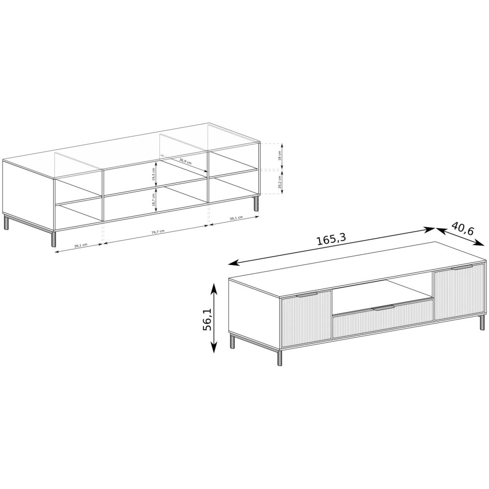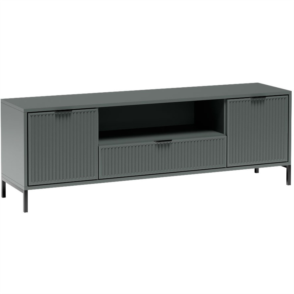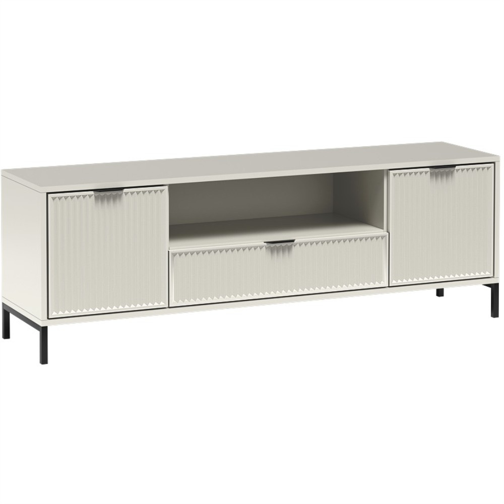 Tato kompaktní nízká skříňka je vybavena dvěma bezúchytkovými dvířky a jednou zásuvkou a nabízí dostatek úložného prostoru pro televizní příslušenství, herní konzole nebo jiné předměty denní potřeby.