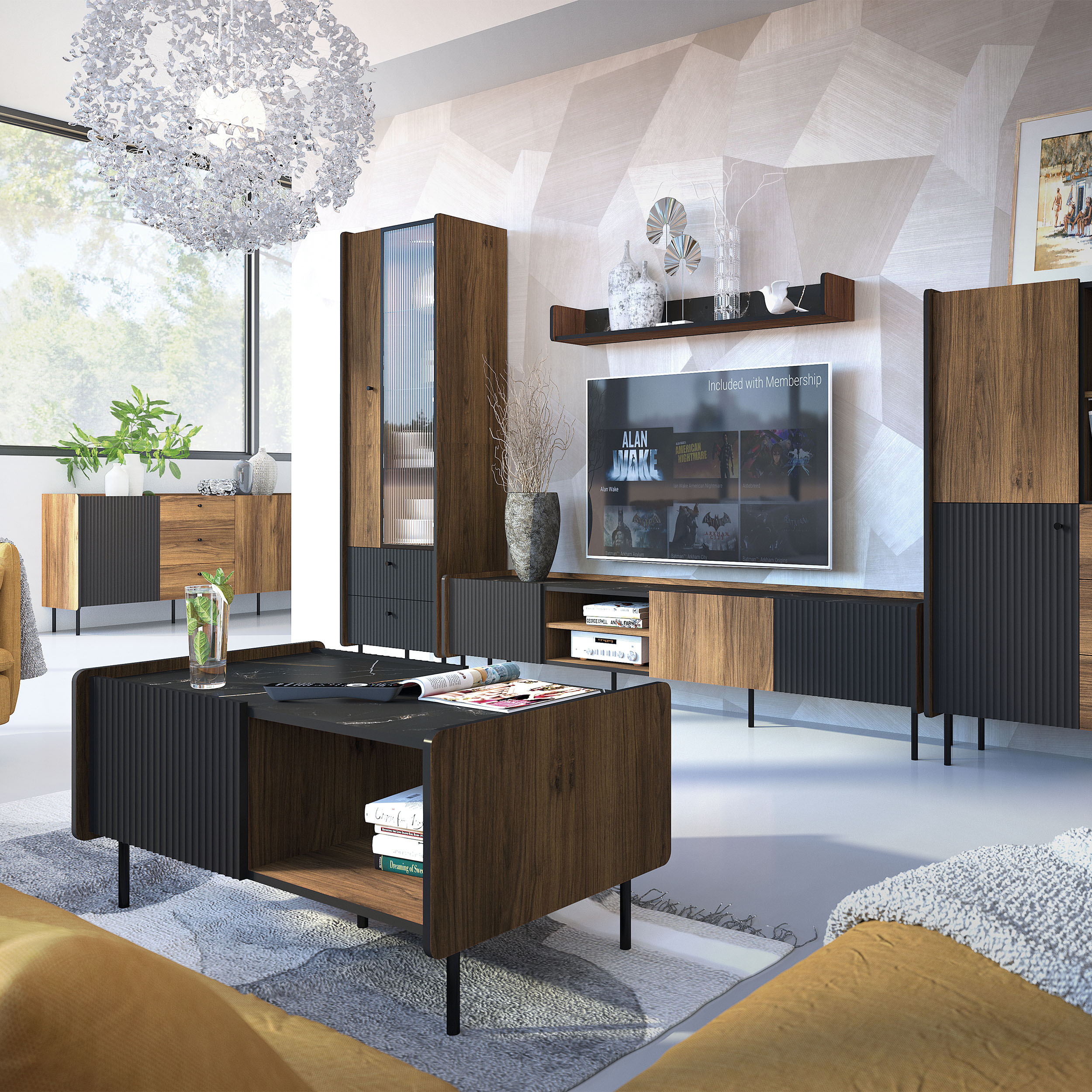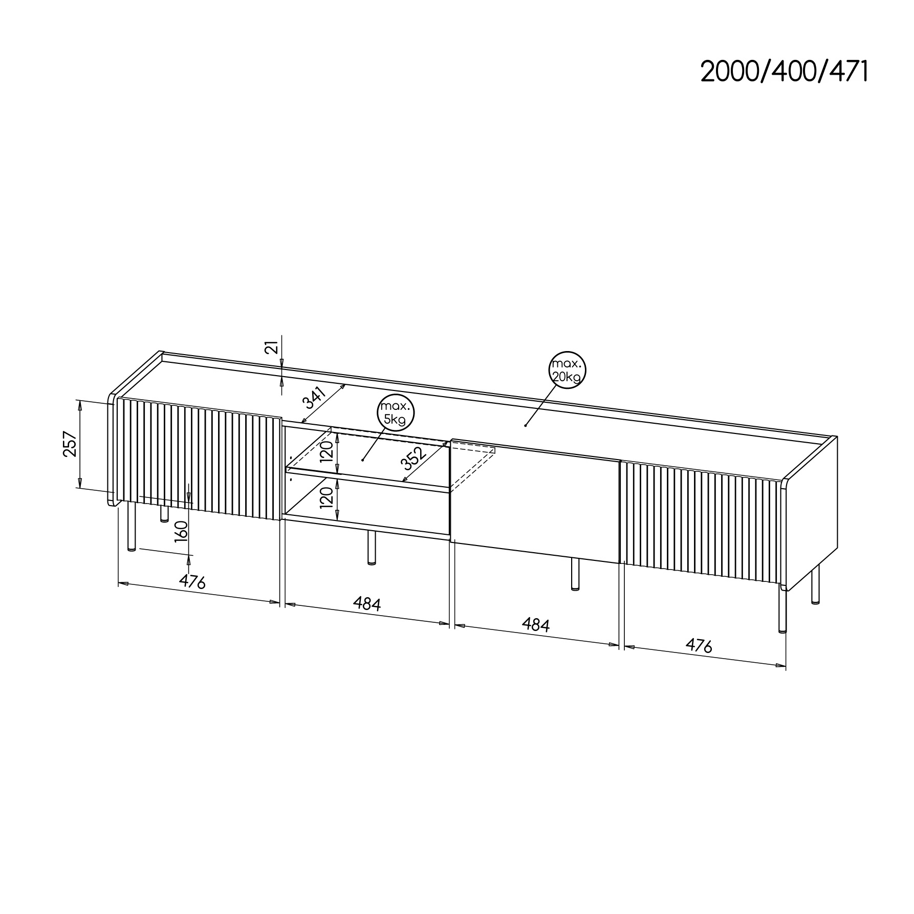 TV stolek PIANO 200 cm je synonymem moderního designu, vysoce kvalitního zpracování a promyšlené funkčnosti. Díky svému elegantnímu vzhledu a velkorysému úložnému prostoru se stane stylovým ústředním bodem vašeho obývacího pokoje. Vysoce kvalitní materiály: Přední strana je vyrobena z laminovaných MDF panelů, které jsou obzvláště odolné, snadno se čistí a jsou odolné – ideální pro každodenní použití. Spousta úložného prostoru: Za třemi dvířky se nachází praktická police, která nabízí místo pro zábavní elektroniku, knihy nebo bytové doplňky. Váš obývací pokoj tak vždy zůstane uklizený a uklizený. Pohodlný design: Plastové úchyty jsou decentně a funkčně navrženy, což zajišťují snadné otevírání a zavírání dvířek. Elegantní vzhled: Čisté linie a moderní design harmonicky zapadají do jakéhokoli interiéru – od současného po klasický. Dvě stylové barevné varianty: Vyberte si mezi matně černou pro minimalistickou, elegantní atmosféru nebo ořechem Warmia pro teplý, přírodní nádech. Perfektní rozměry: S rozměry 200 × 40 × 47 cm nabízí TV stolek dostatek úložného prostoru pro televizory, konzole a dekorace – ideální do velkých obývacích pokojů. TV stolek PIANO elegantně kombinuje funkčnost a styl. Nejenže nabízí praktický úložný prostor, ale díky modernímu designu a vysoce kvalitním materiálům se stane skutečným vrcholem vašeho domova.