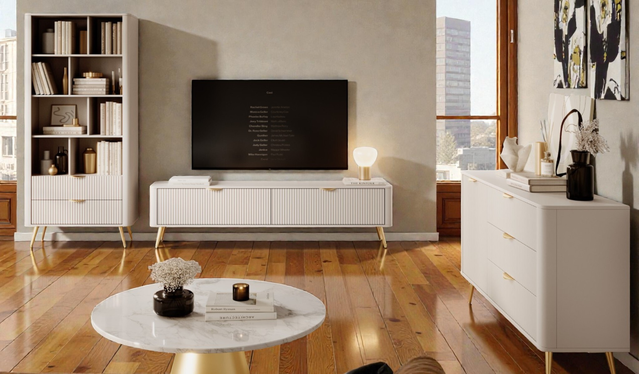 Vytvořte si interiér, ze kterého vyzařuje klid, rovnováha a vytříbený vkus. Sestava nábytku Bingo (8 elementů) je navržena pro ty, kteří milují moderní formy v kombinaci s jemnou barevnou paletou. Dominantní odstín pouštního písku vnáší do místnosti hřejivou atmosféru, zatímco zlaté detaily dodávají celku nádech luxusu.