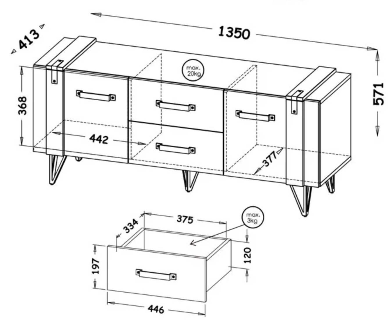 135x57x41cm