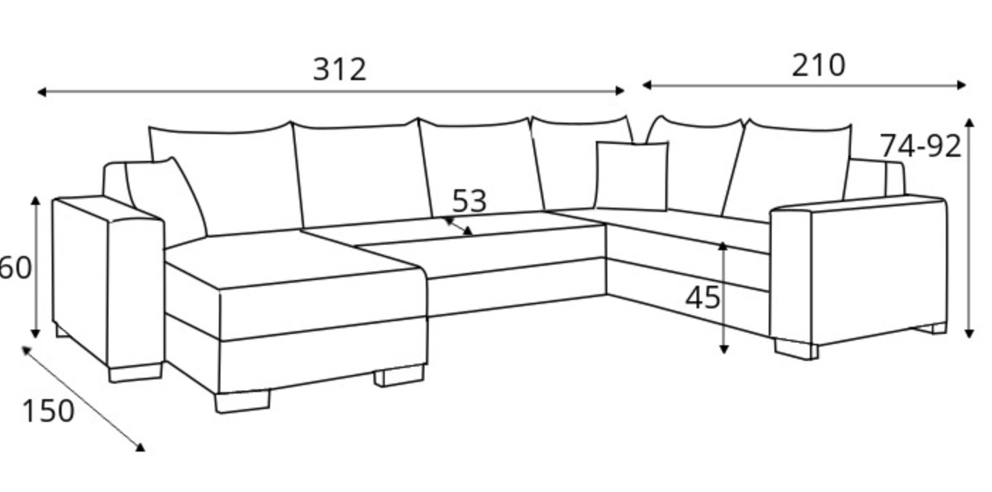 Hledáte dominantní kus nábytku, který nabídne dostatek místa pro všechny členy domácnosti a zároveň vyřeší nedostatek úložného prostoru? Sedací souprava Deron ve tvaru U je ztělesněním robustnosti a funkčnosti. Se svou šířkou 312 cm se stane centrem vašeho domova, kde si každý najde své oblíbené místo pro odpočinek.