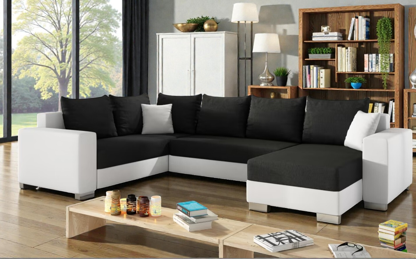 Velká sedačka ve tvaru U Deron, bíká/černá