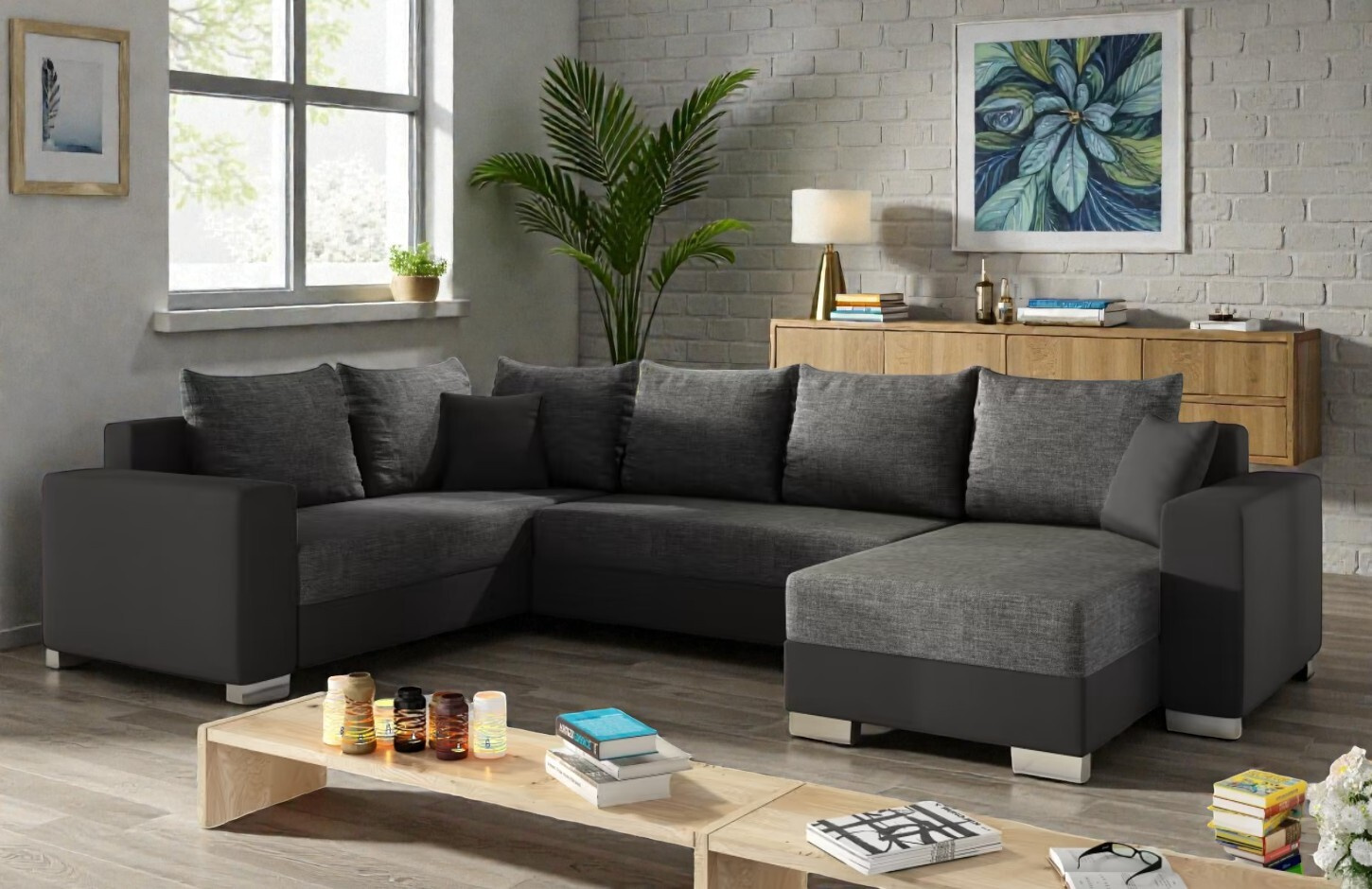 Hledáte dominantní kus nábytku, který nabídne dostatek místa pro všechny členy domácnosti a zároveň vyřeší nedostatek úložného prostoru? Sedací souprava Deron ve tvaru U je ztělesněním robustnosti a funkčnosti. Se svou šířkou 312 cm se stane centrem vašeho domova, kde si každý najde své oblíbené místo pro odpočinek.