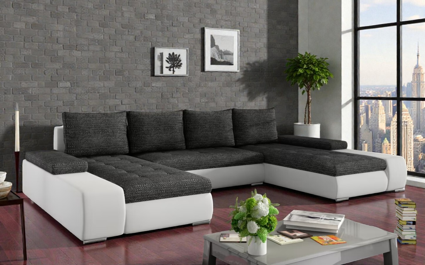 Velká sedačka ve tvaru U Moscon, bílá/šedá