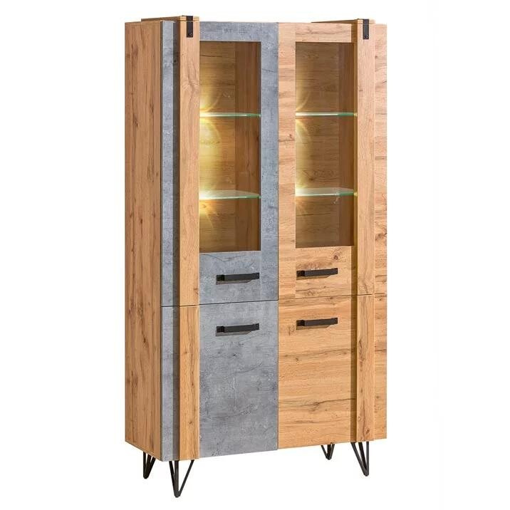 Tato kolekce vyniká odvážným kontrastem struktur. Zatímco dub wotan přináší hřejivou barvu a výraznou kresbu dřeva, betonové detaily dodávají nábytku moderní, „loftový“ vzhled.