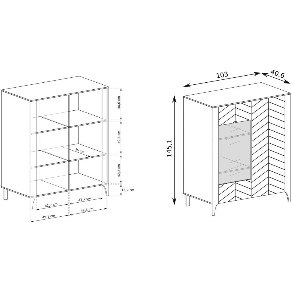 Vitrína LUME se dvěma skleněnými dvířky je dokonalou kombinací elegance, funkčnosti a moderního designu. Díky svým čistým liniím a vysoce kvalitnímu řemeslnému zpracování se rychle stane stylovým ústředním bodem vašeho obytného prostoru. Dvoje dvířka z tvrzeného bezpečnostního skla nabízejí nejen bezpečné úložné řešení pro dekorativní předměty, nádobí nebo knihy, ale také vkusnou prezentaci vašich oblíbených předmětů. Díky integrovaným pantům s tlumeným dovíráním se dvířka zavírají jemně a téměř neslyšně – pohodlí, které si v každodenním životě rychle oceníte. Systém otevírání push-to-open umožňuje otevírání dvířek bez úchytek, což zdůrazňuje čistý vzhled a nabízí maximální snadné použití. Robustní konstrukce s vysoce kvalitním melaminovým povlakem se nejen obzvláště snadno čistí, ale je také odolná proti poškrábání a trvanlivá, takže si svou vitrínu budete užívat po dlouhou dobu. Díky kompaktním rozměrům 103 × 41 × 145 cm se perfektně hodí jak do prostorných obytných prostor, tak i do menších místností. Rozměry: cm Rádi bychom vás informovali, že všechny rozměry čalouněného nábytku mají toleranci +/- 2 %. Snažíme se zobrazit všechny barvy co nejpřesněji. Upozorňujeme však, že se mohou mírně lišit od skutečnosti v důsledku nastavení monitoru a grafické karty. Není to proto důvod k reklamaci. Kromě toho se barvy různých sérií látek mohou lišit v odstínech. Dodání platí pro adresy v rámci Německa. Nedoručujeme na ostrovy ani do horských oblastí. Máme vlastní bezpečnou a rychlou přepravní službu. O datu doručení budete předem informováni.