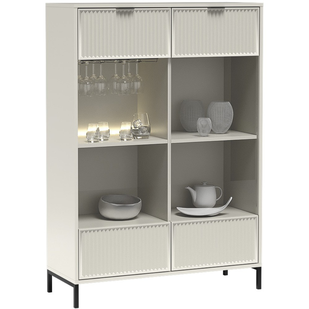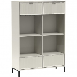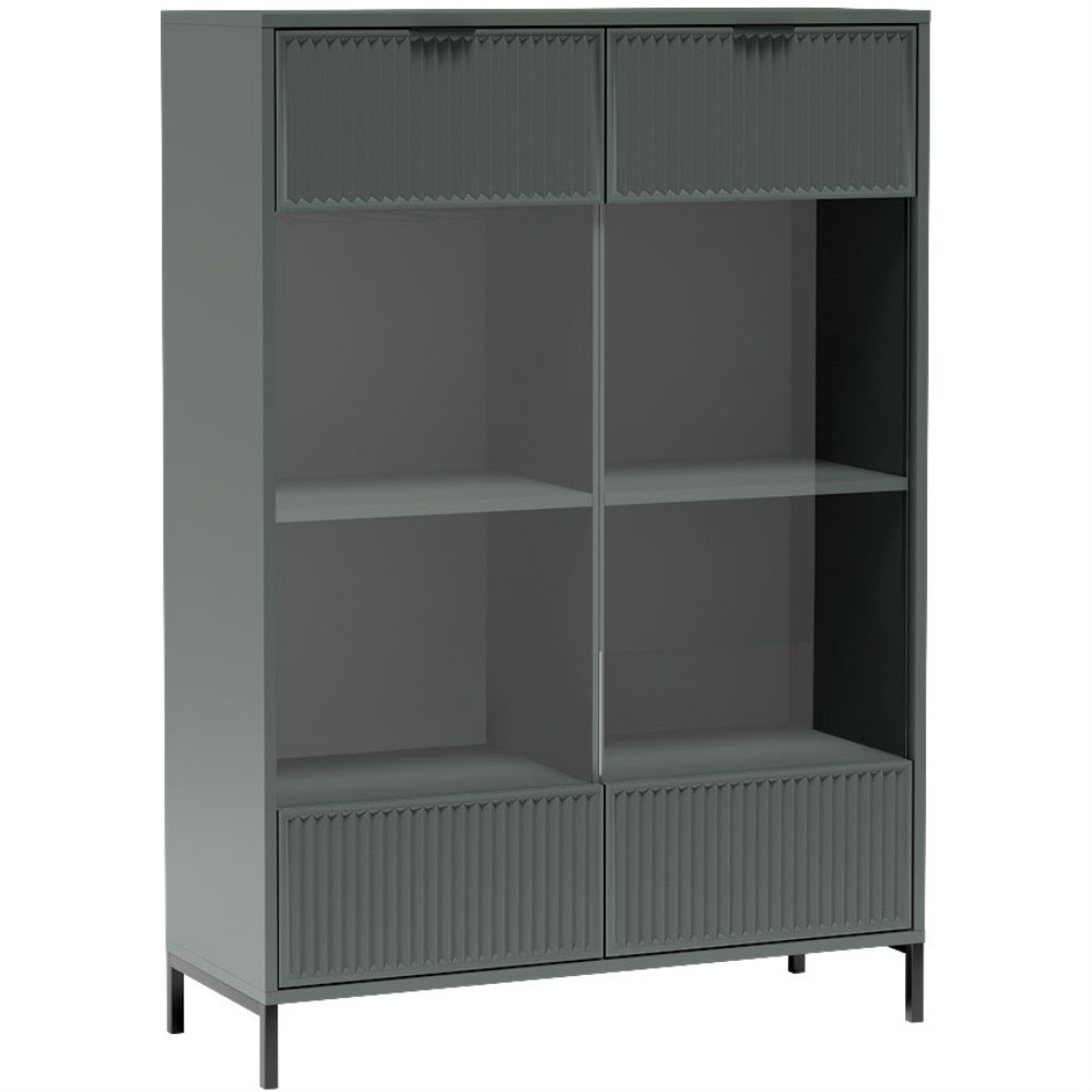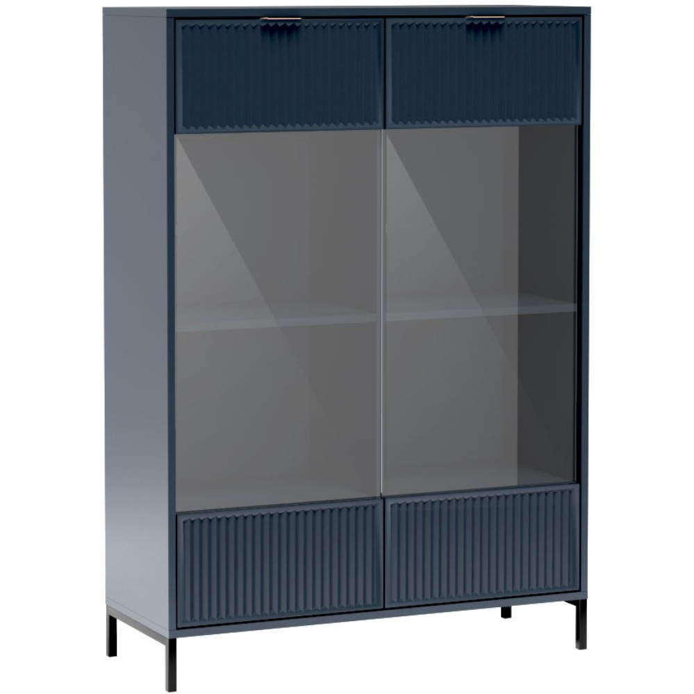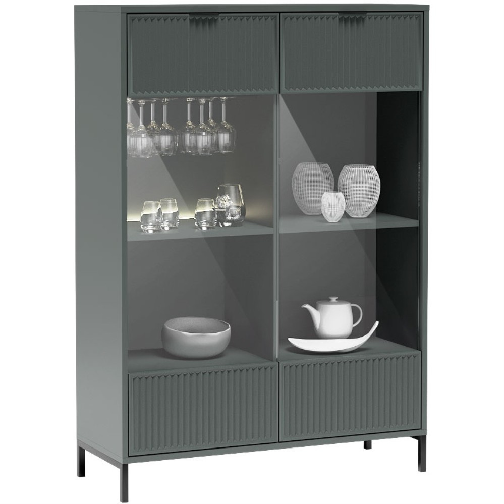 - Úzká 2dveřová vitrína s elegantní žebrovanou texturou a skleněnými dvířky,