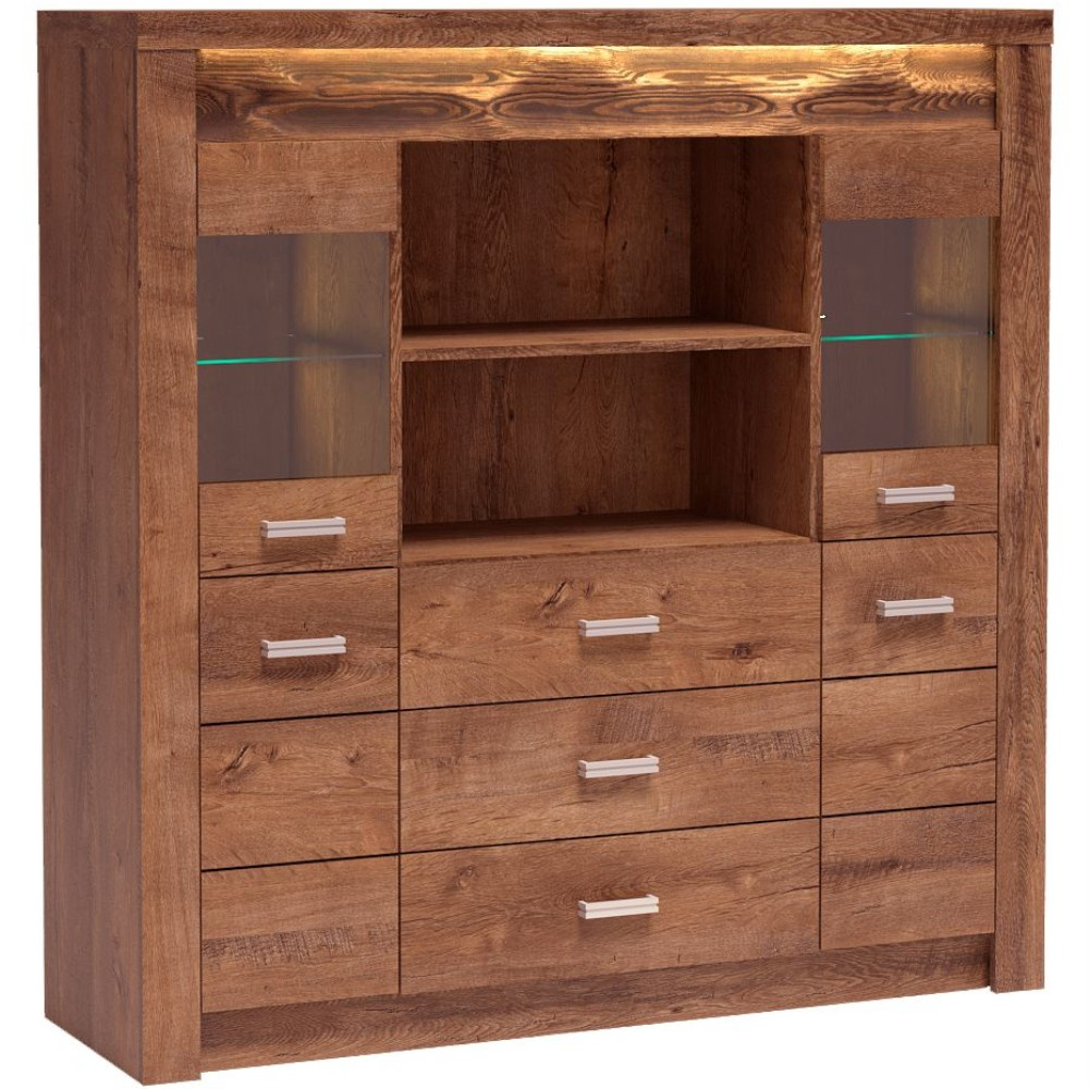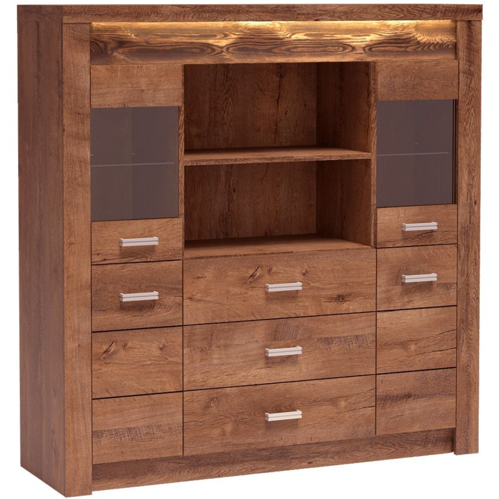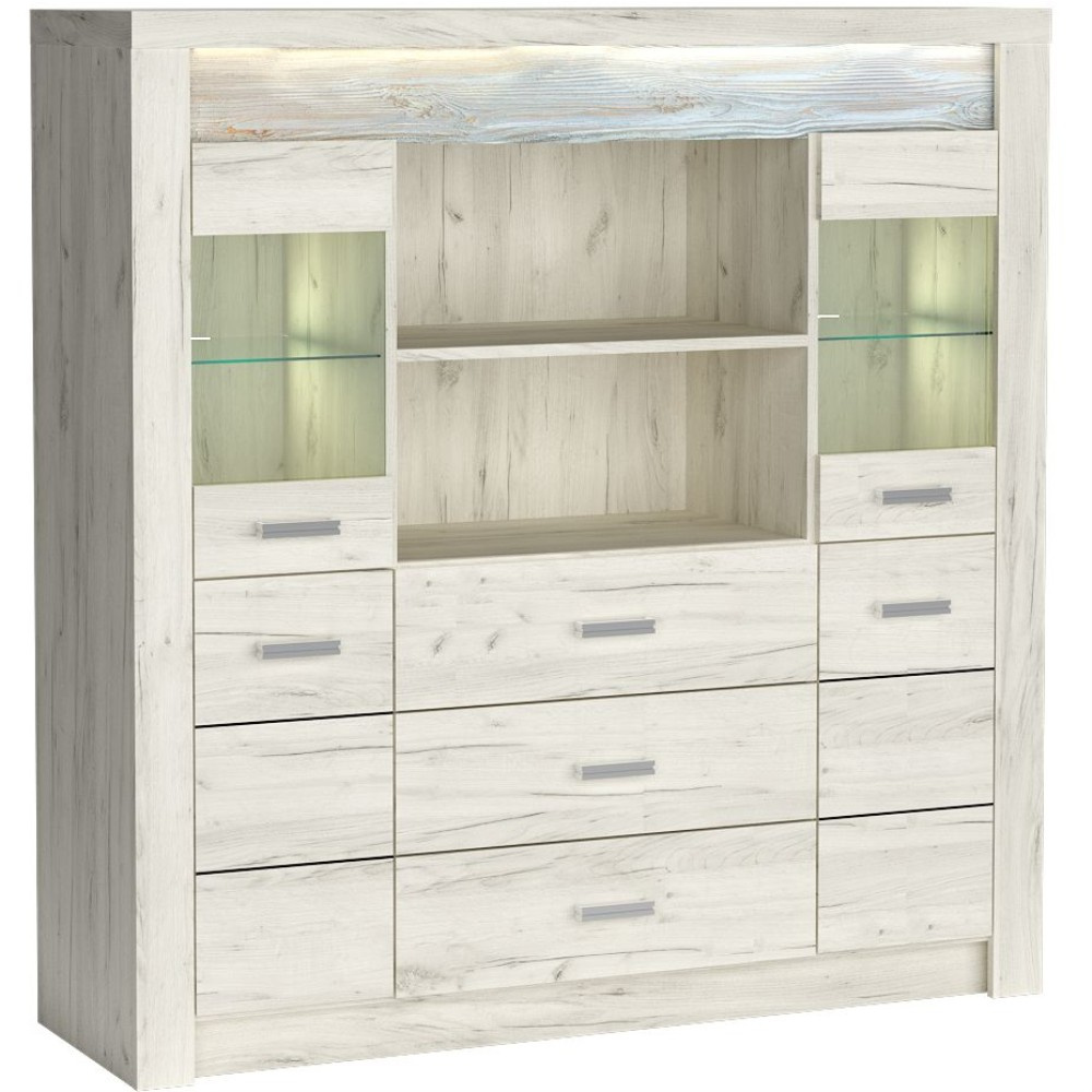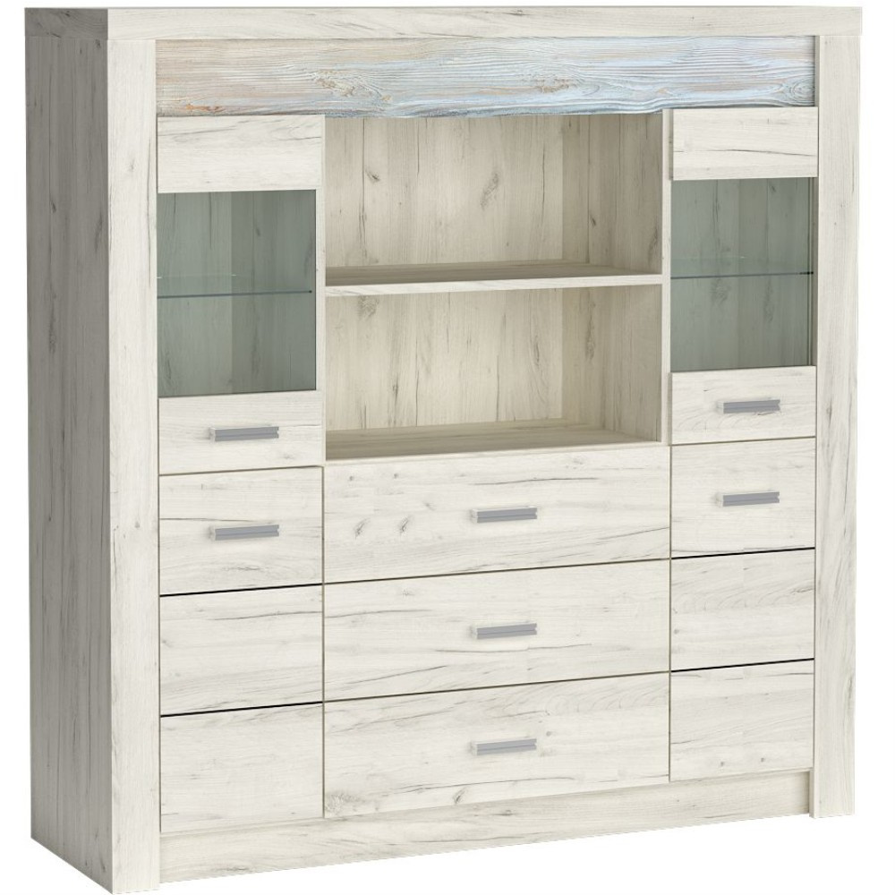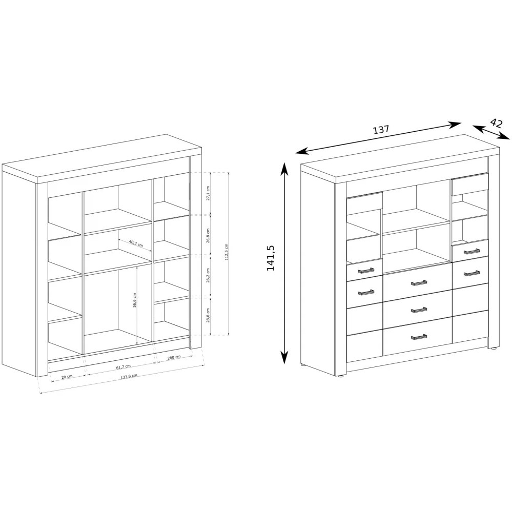 Tento kus nábytku nabízí promyšlené uspořádání: dvě boční skleněné vitríny na dekorativní předměty, sklo nebo porcelán, a také tři praktické zásuvky a uzavřené úložné přihrádky, které vytvářejí prostor pro další předměty. Vysoce kvalitní kovové úchyty a výrazné linie podtrhují moderní charakter série. Vitrína je k dispozici ve třech elegantních barevných variantách: světlý jasan, tmavý jasan a kraftová bílá. Pro harmonický koncept prostoru lze tento model ideálně kombinovat s dalšími prvky z kolekce POLIS. Rozměry: Upozorňujeme, že všechny rozměry čalouněného nábytku mají toleranci +/- 2 %. Snažíme se zobrazit všechny barvy co nejpřesněji. Upozorňujeme však, že v důsledku nastavení monitoru a grafické karty se mohou vyskytnout drobné odchylky. Toto není důvod k reklamaci. Barvy různých sérií látek se navíc mohou mírně lišit v odstínu. Dodání je možné na adresy v Německu. Nedodáváme na ostrovy ani do horských oblastí. Disponujeme vlastní bezpečnou a rychlou přepravní službou. O datu dodání budete předem informováni.