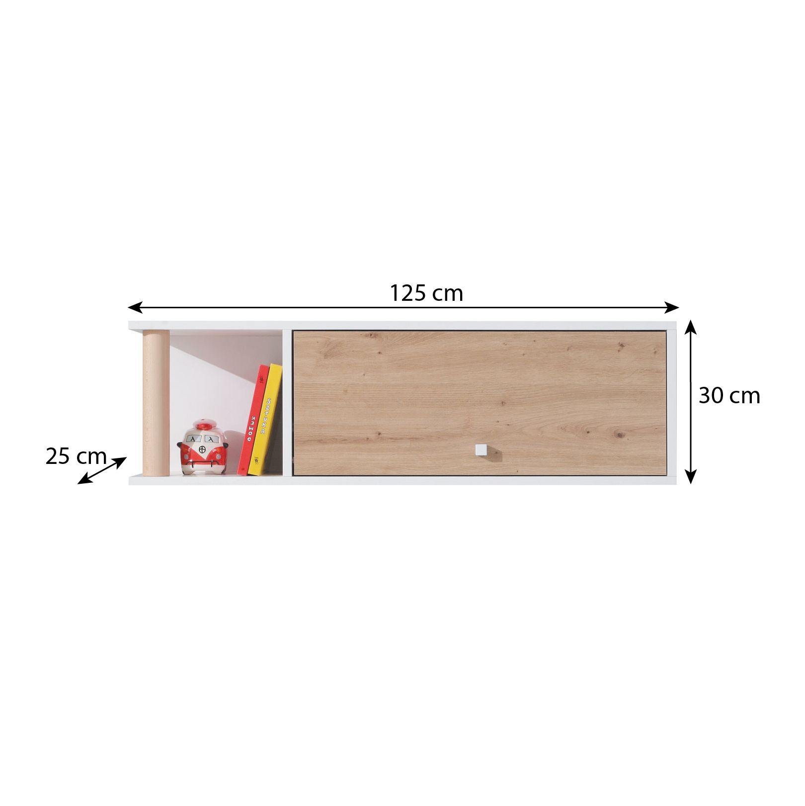 Nástěnná police FIGO kombinuje funkční úložný prostor a moderní design v kompaktním formátu. S rozměry 125 × 25 × 30 cm se perfektně hodí do pokojů pro teenagery, bytů nebo menších obytných prostor a nabízí chytrou kombinaci uzavřeného a otevřeného úložného prostoru. Praktické uspořádání – Police je vybavena jedním dvířkem pro skryté uložení a také jednou otevřenou policí, ideální pro knihy, dekorace nebo často používané předměty. Vysoce kvalitní zpracování – Tělo z 16mm laminované desky a kovové rukojeti zaručují stabilitu a odolnost. Masivní dřevěné nohy poskytují dodatečnou stabilitu. Moderní design – Stylová barevná kombinace dubu Artisan, bílé a šedé dodává poličce moderní vzhled, který se bez námahy integruje do různých stylů interiérového designu. Úspora místa a Všestrannost – Díky kompaktním rozměrům nabízí police praktický úložný prostor na malém prostoru – ideální do pokojů pro teenagery nebo malých bytů. Nástěnná police FIGO s 1 dvířky a 1 policí zaujme svou chytrou funkčností, vysoce kvalitními materiály a moderním designem. Stylový a praktický doplněk, který vytváří pořádek a opticky vylepšuje místnost. Objevte další nábytek z kolekce FIGO v našich dalších aukcích a navrhněte si domov v jednotném stylu. Rozměry: Šířka: 125 cm Výška: 30 cm Hloubka: 25 cm Rádi bychom vás informovali, že všechny rozměry čalouněného nábytku mají toleranci +/- 2 %. Snažíme se zobrazit všechny barvy co nejpřesněji. Upozorňujeme však, že se mohou mírně lišit v důsledku nastavení monitoru a grafické karty. Toto není důvod k reklamaci. Barvy různých sérií látek se navíc mohou mírně lišit. Dodání je možné na adresy v rámci Německa. Nedodáváme na ostrovy ani do horských oblastí. Máme vlastní bezpečnou a rychlou přepravní službu. O datu dodání budete předem informováni.